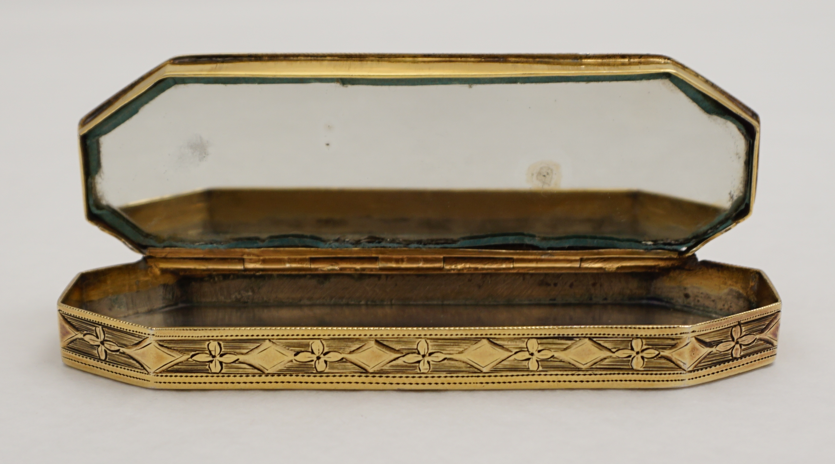 CONDITION | excellent, perfect hinge action and lid closure, I have left the old base felt loose so that the beautifully struck hallmarks can be enjoyed, slightly aggressive assayer's scrape just above the lion passant guardant, mirror plate to lid has age but may not be original |