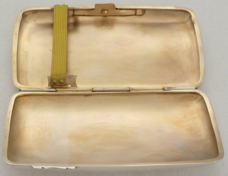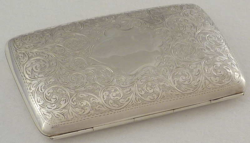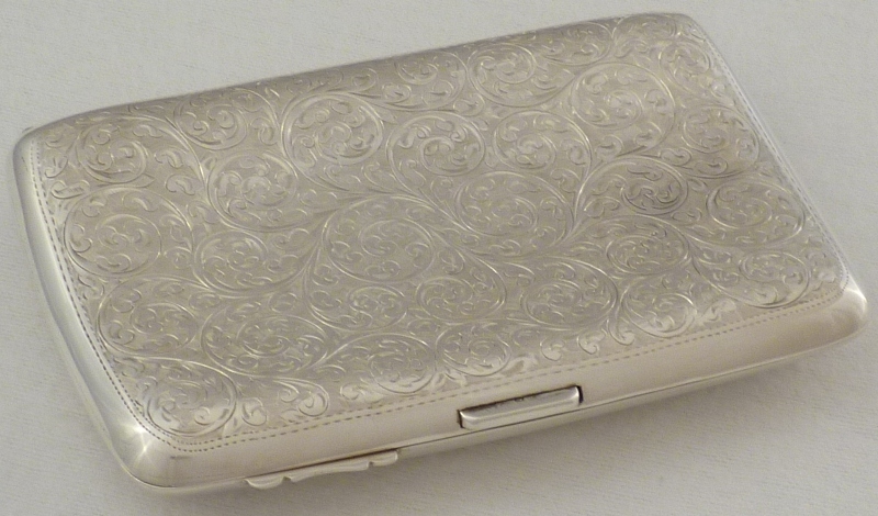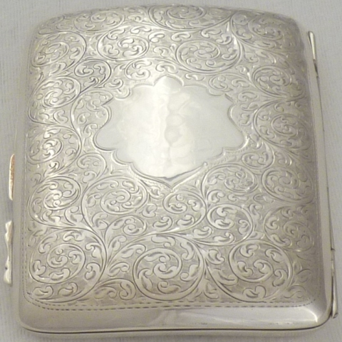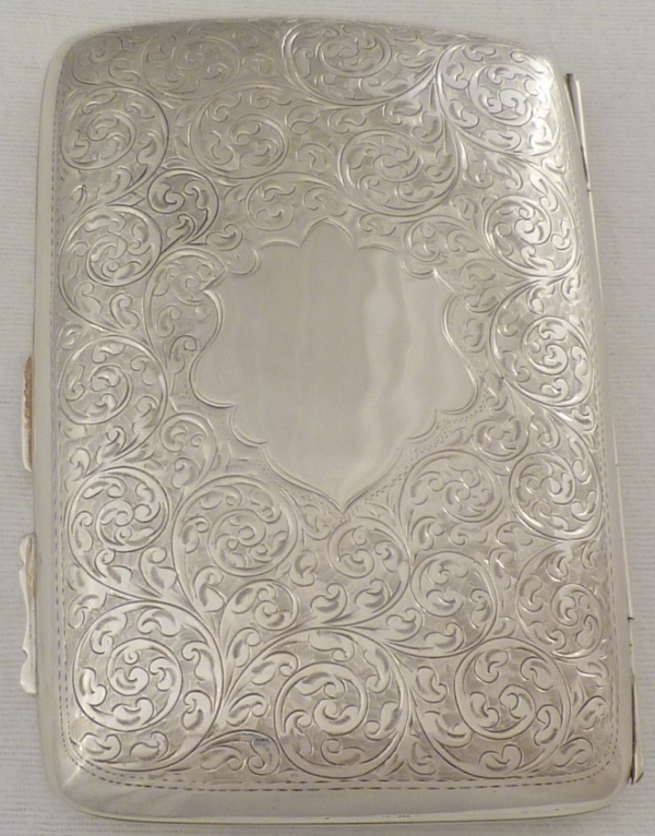 DESCRIPTION | Silver cigar case with engraved floral decoration, a blank cartouche and matt gilded interior. |