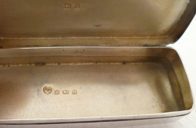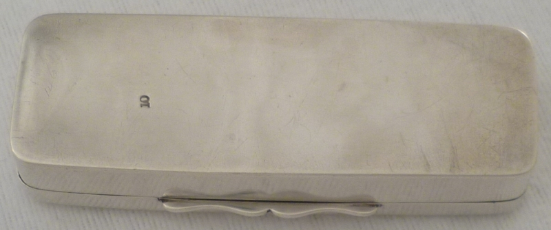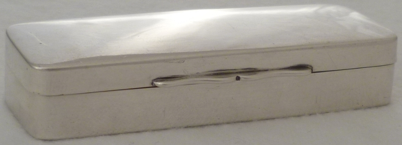 DESCRIPTION | Edwardian silver tooth pick box with a spring loaded piano hinged lid and a gilded interior. |
