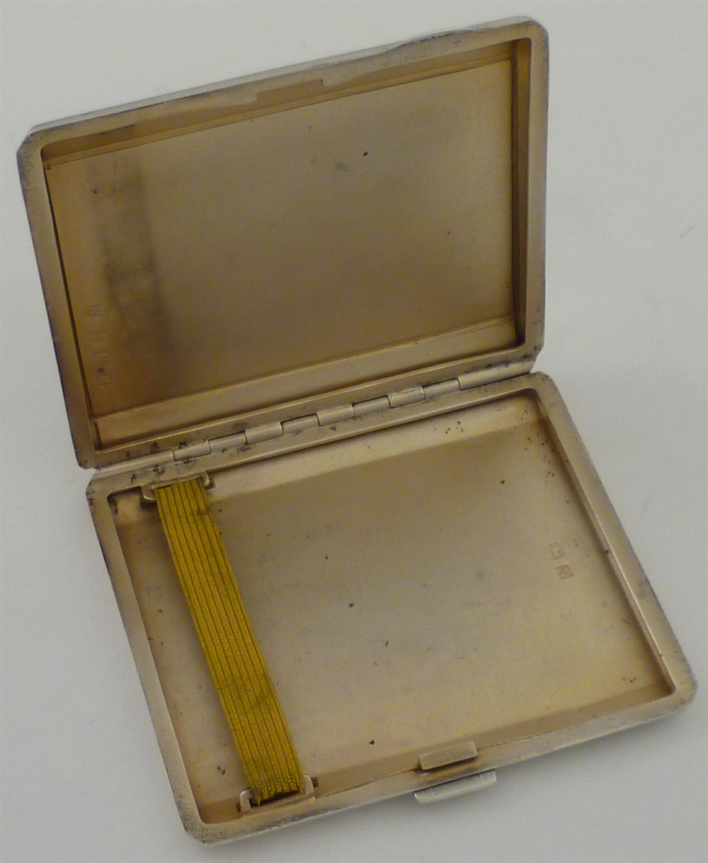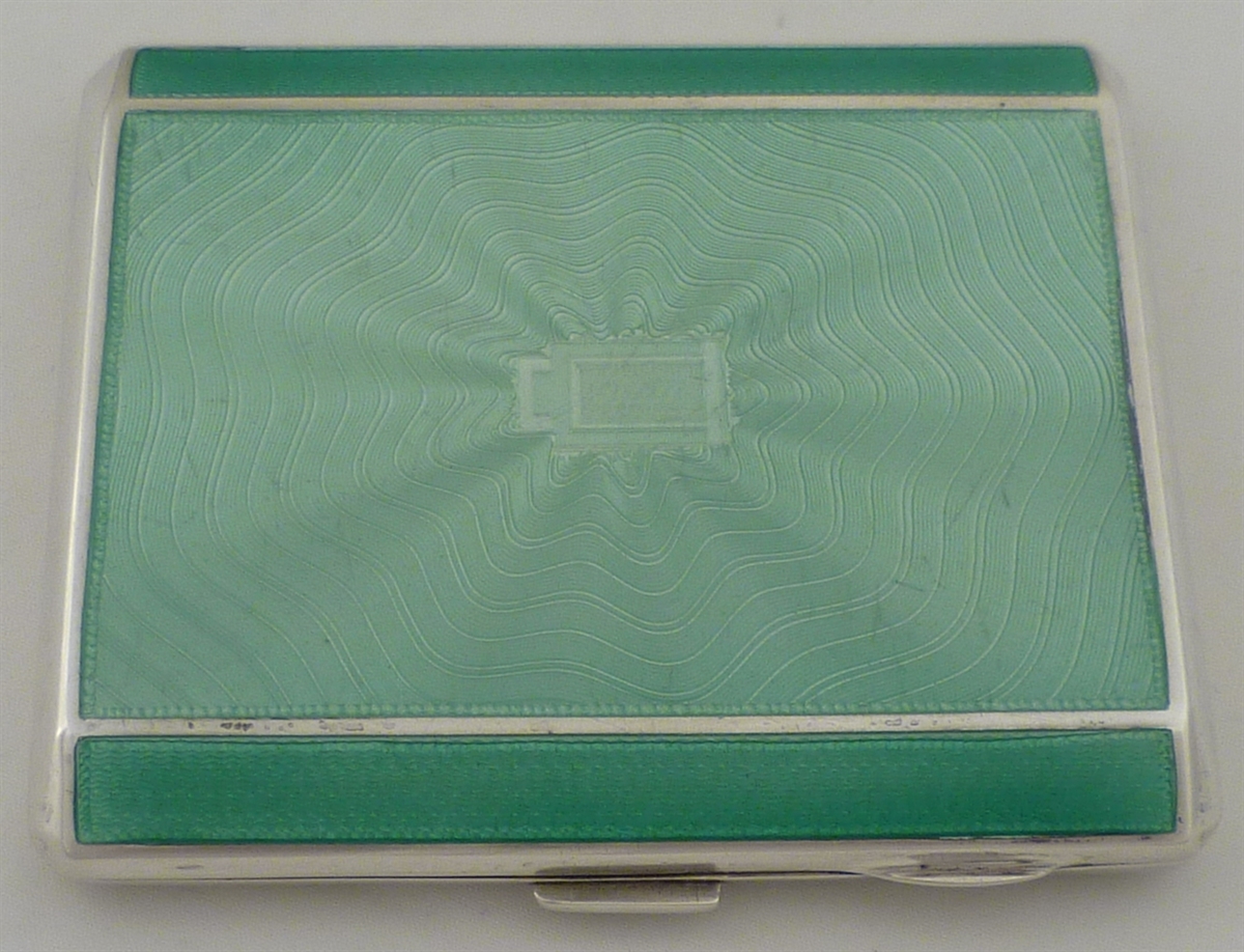 DESCRIPTION | Beautiful Art Deco solid silver cigarette case with green enamel decoration and a gilded interior. |