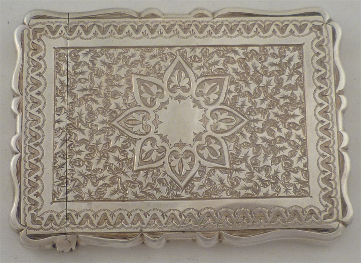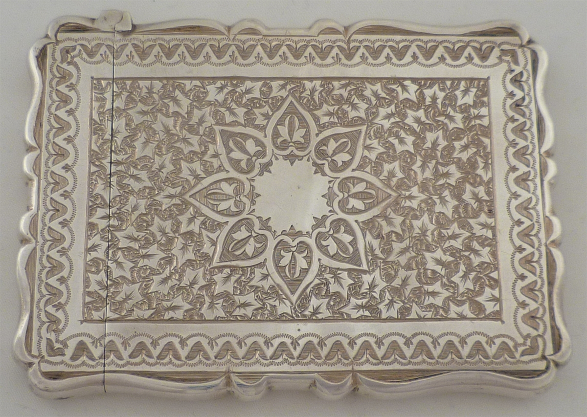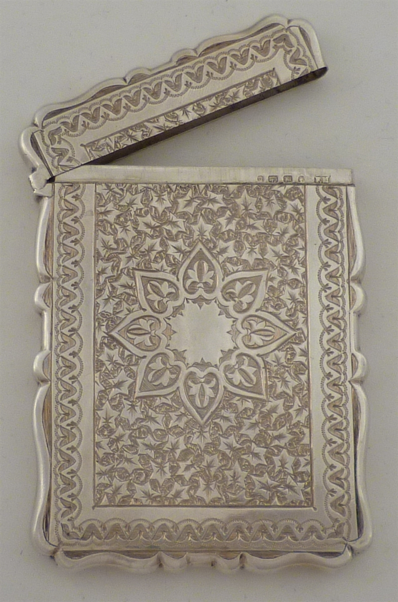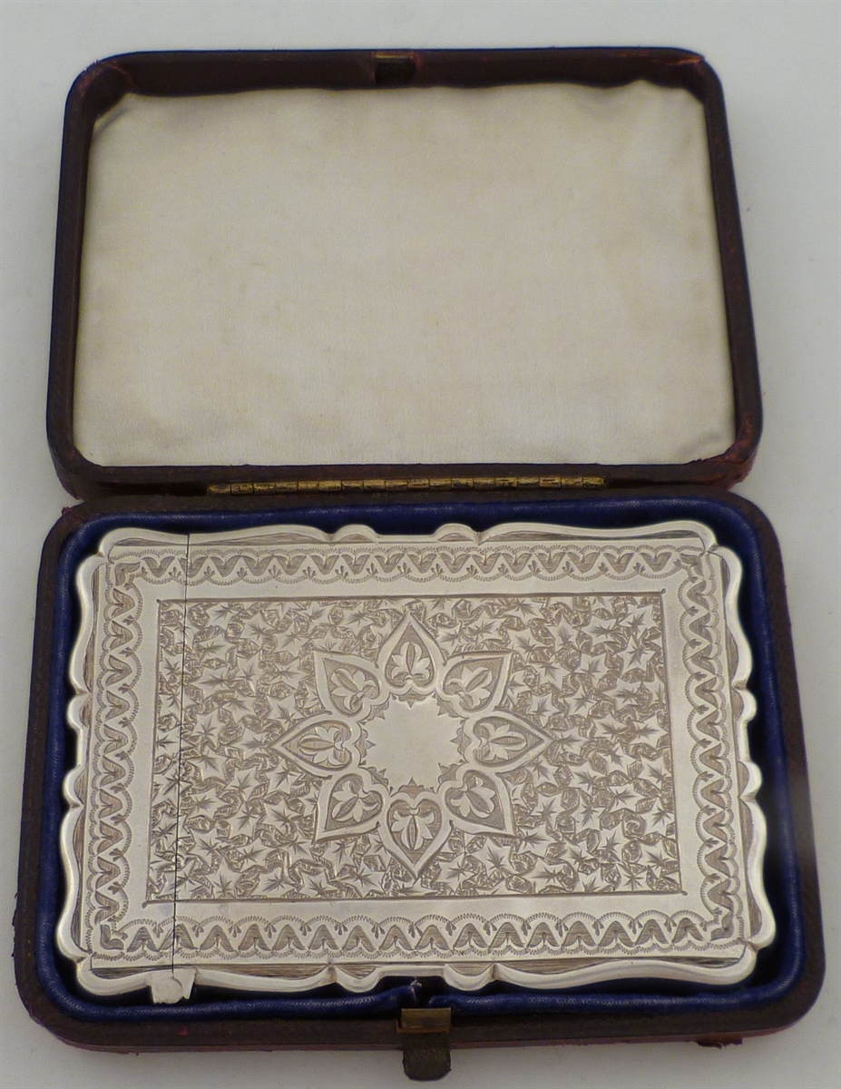Superb Victorian solid silver calling card case with engraved arabesque decoration and a blank cartouche. Comes complete with the