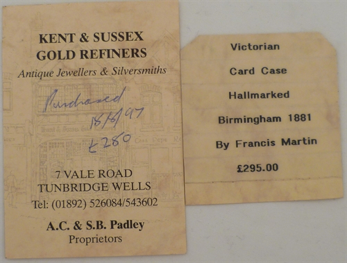 F.M, card states the Dublin maker Francis Martin but I think the Birmingham maker Frederick Marson is more likely |