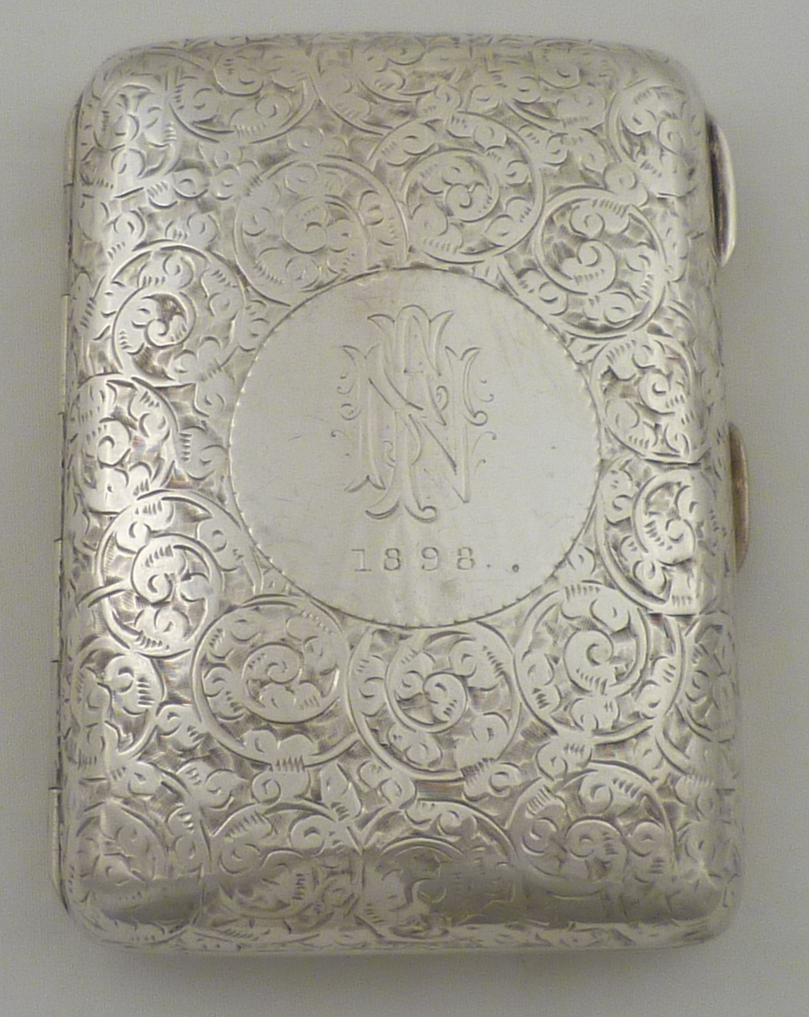 DESCRIPTION | Good Victorian silver cigarette case with engraved decoration and a gilded interior. Monogram and date engraved to the frontal cartouche |