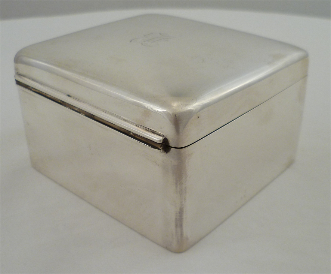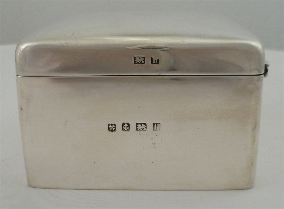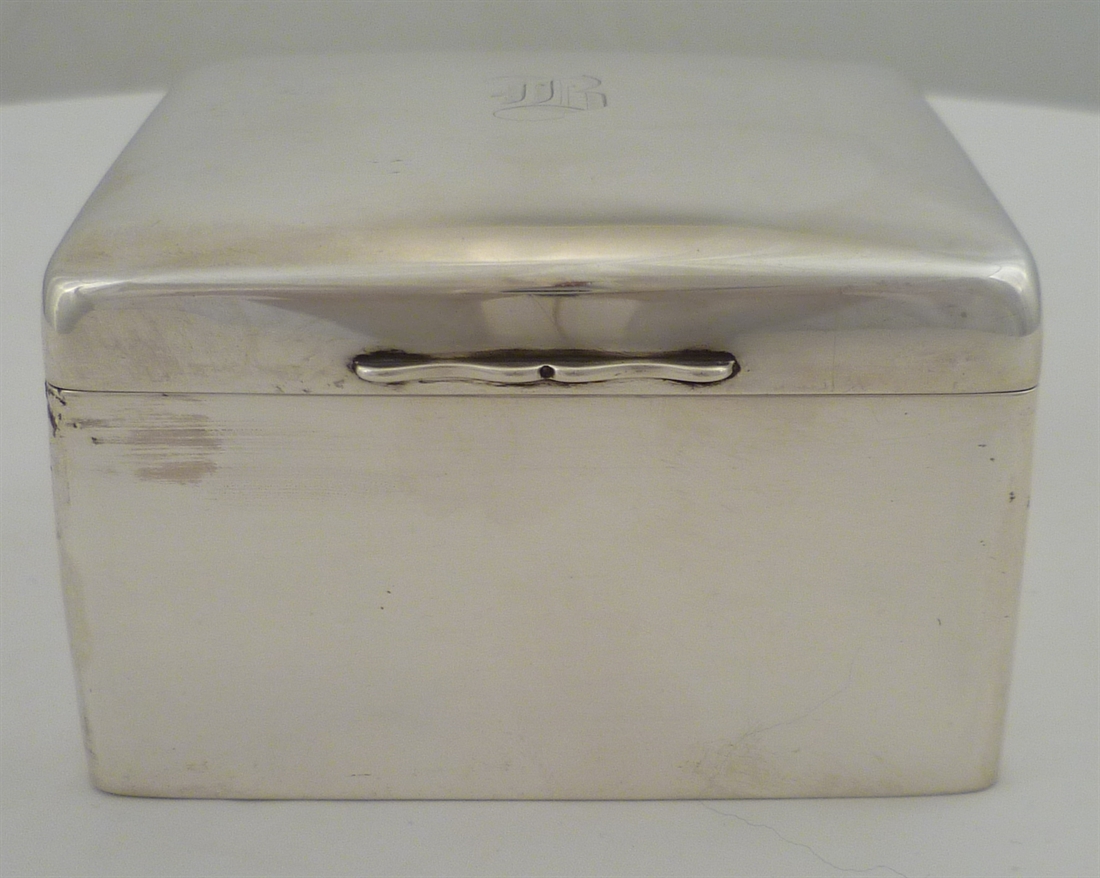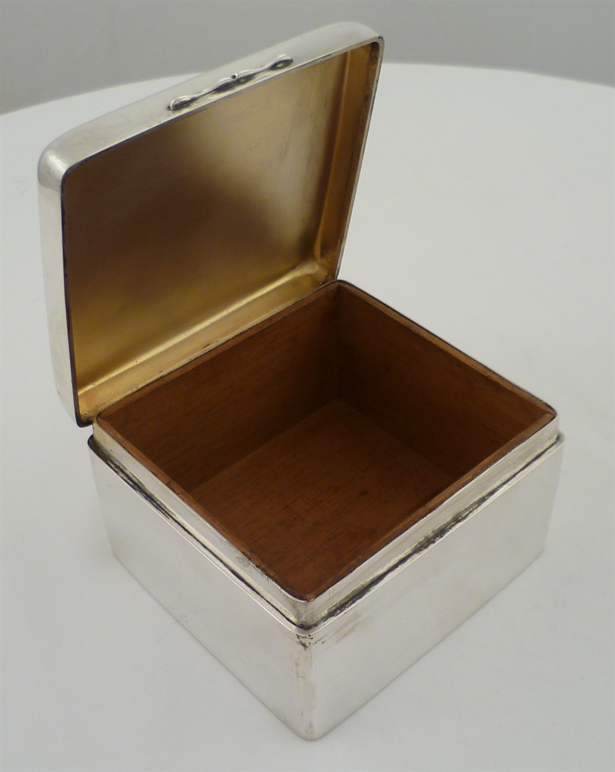 DESCRIPTION | High quality Edwardian silver cigarette box with a piano hinge, gilded interior and cedar wood lined interior. Lid inscribed initial 'B' and the wood lining still smells sweetly. |