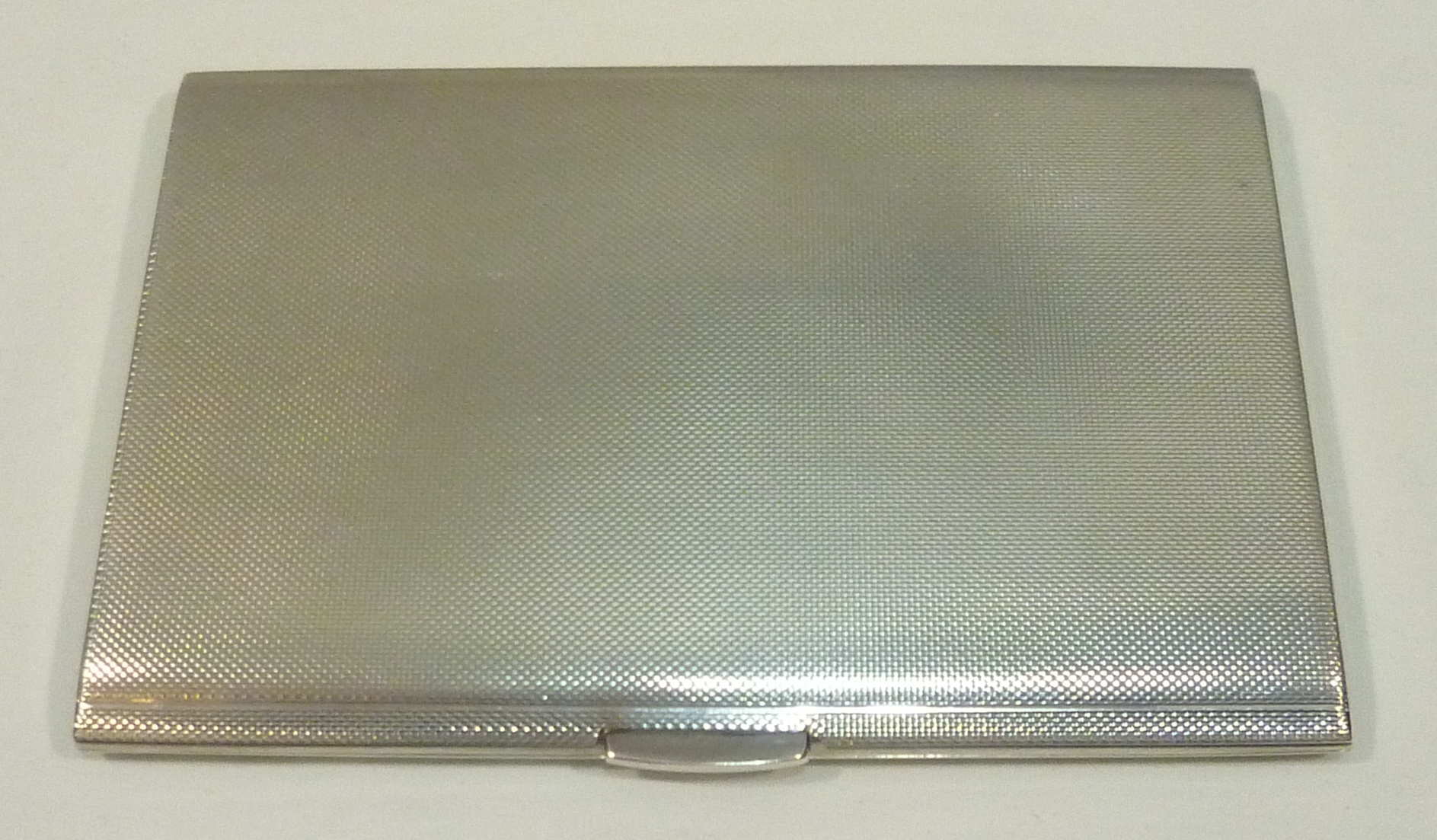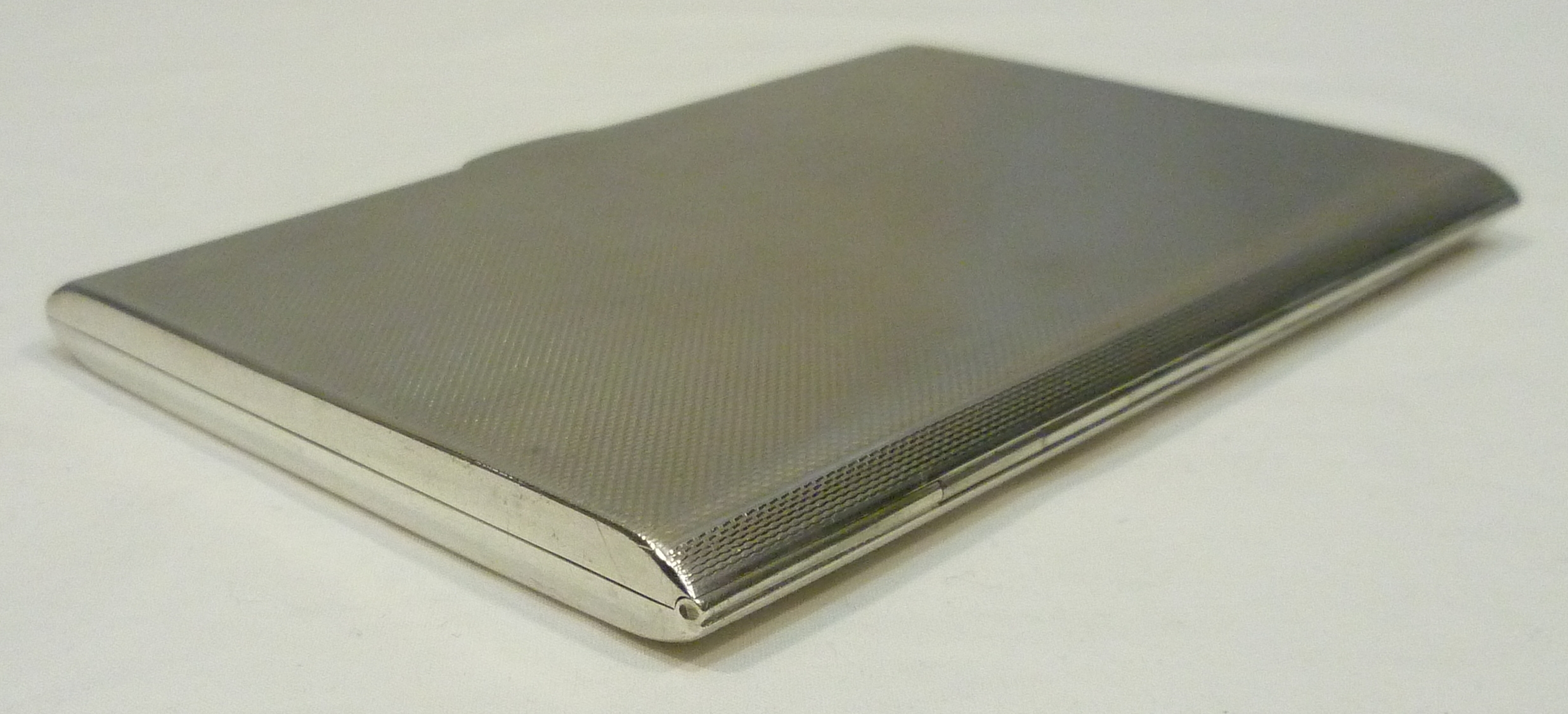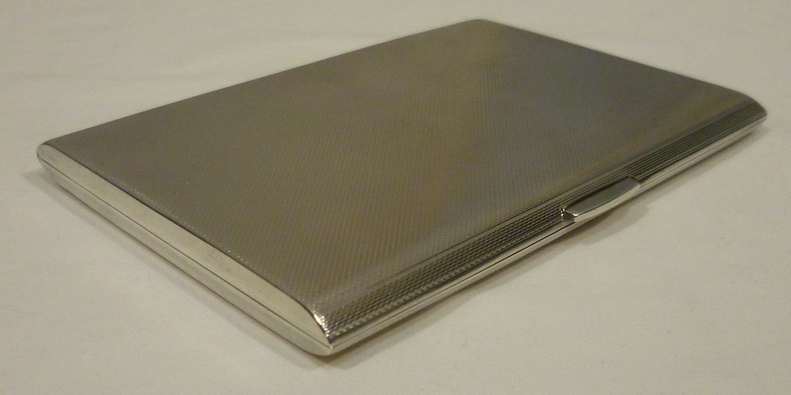 DESCRIPTION | English solid sterling silver cigarette case with a gilded interior and engine turned engraved decoration. |