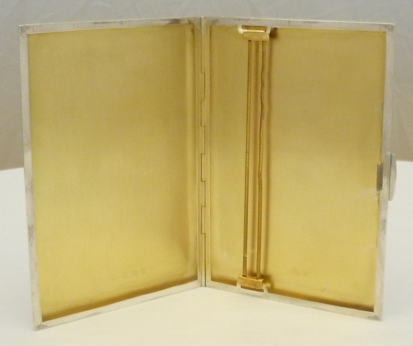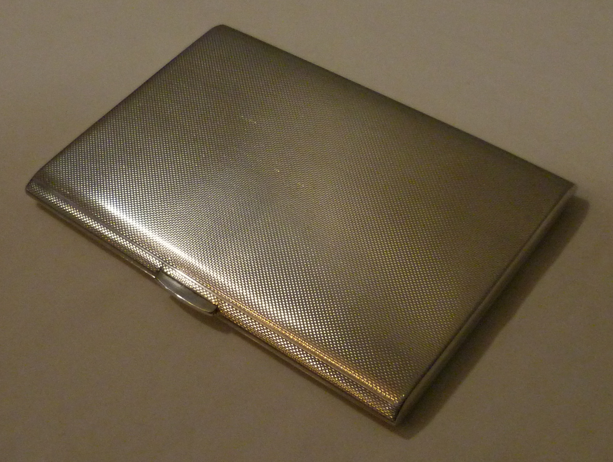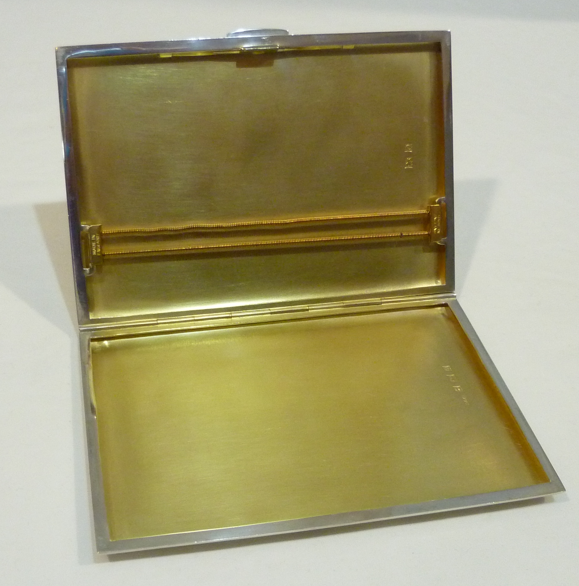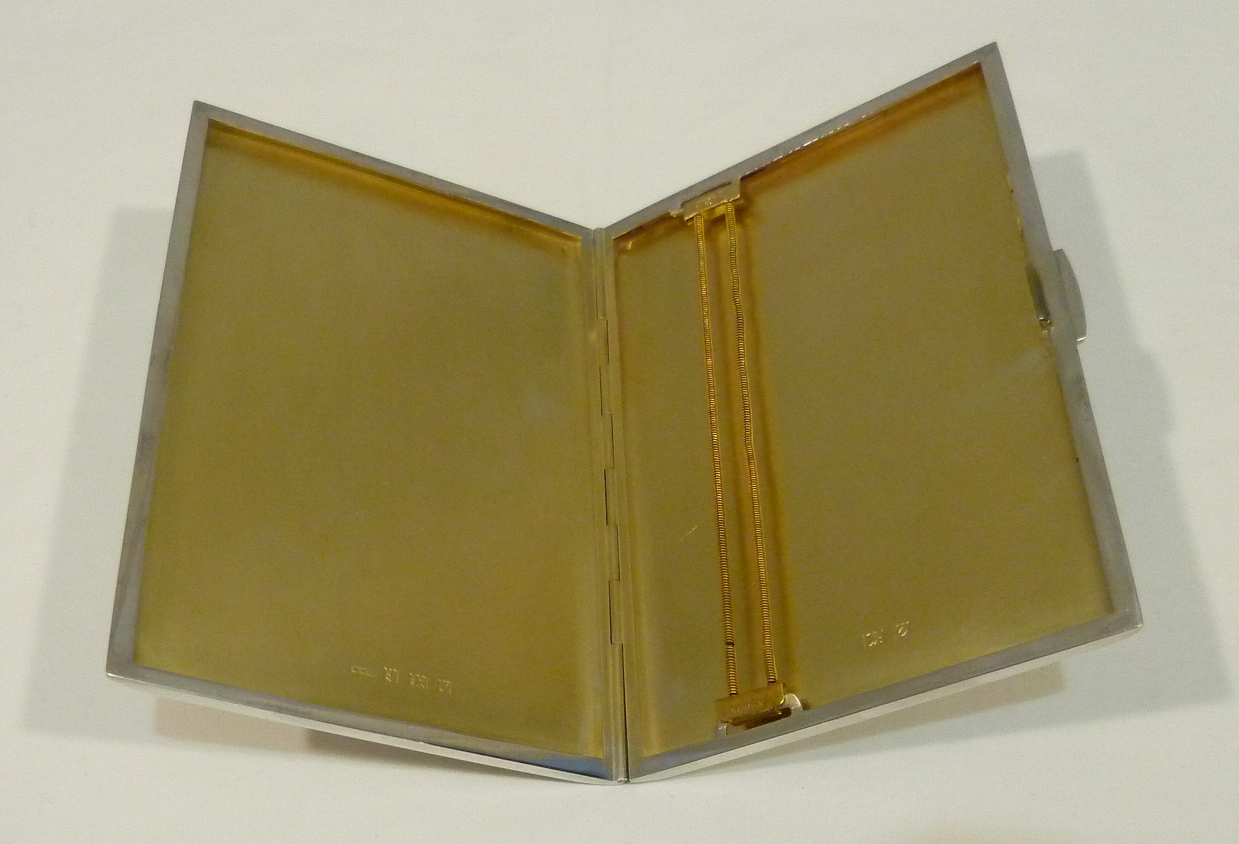 DESCRIPTION | English solid sterling silver cigarette case with a gilded interior and engine turned engraved decoration. |