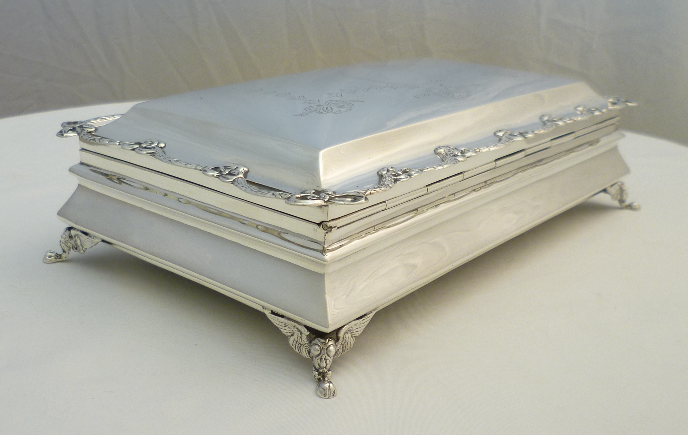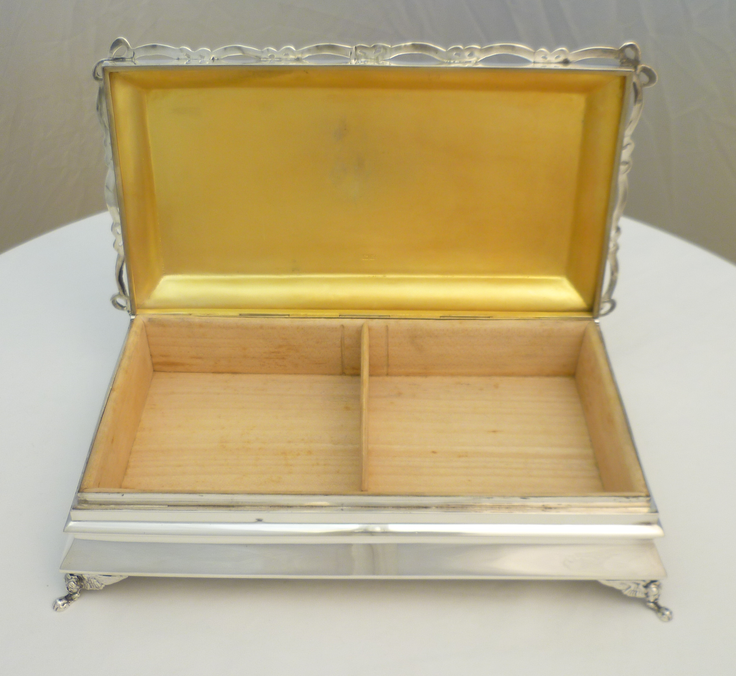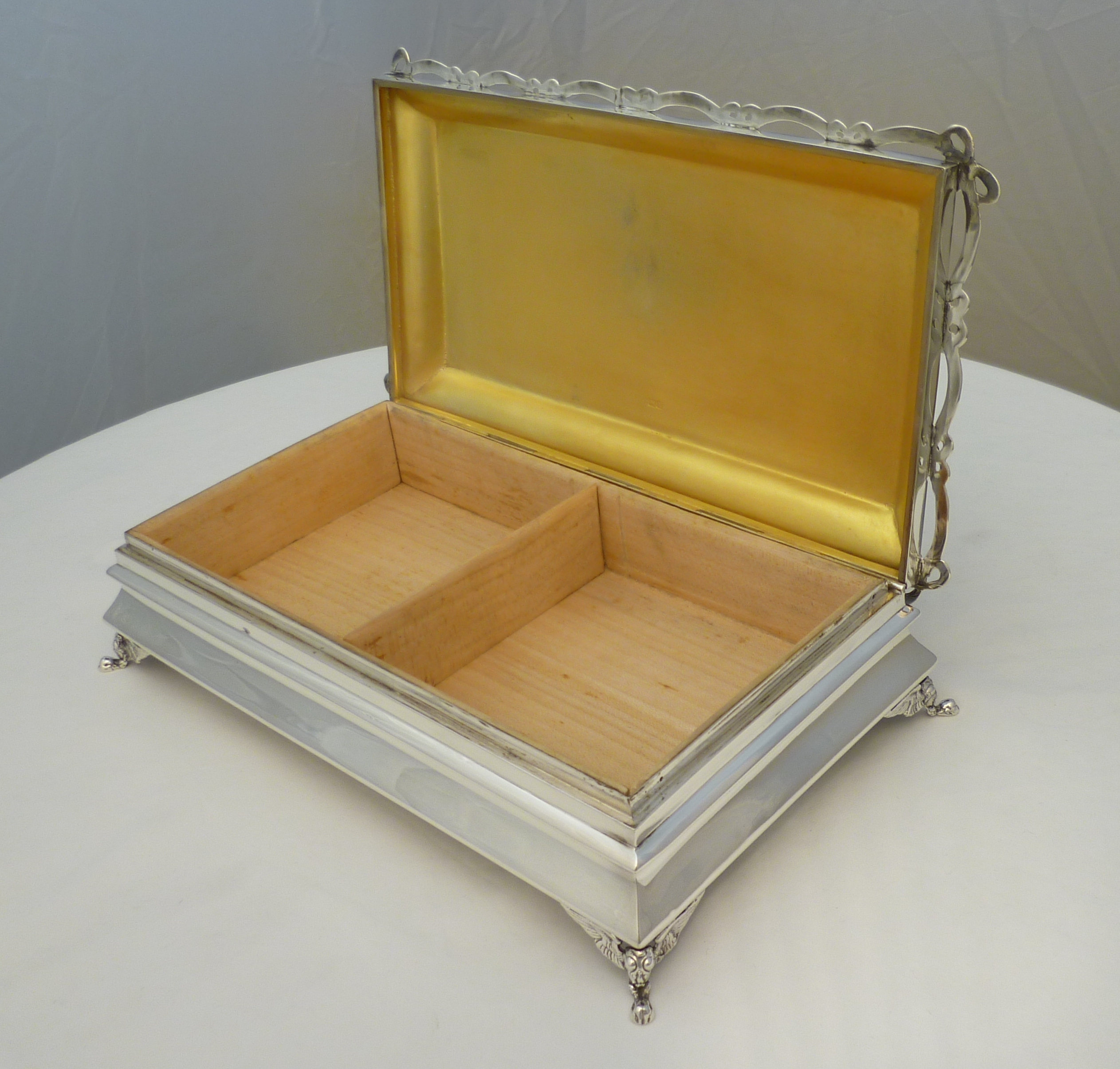 The whole supported by four cast solid silver winged mask feet. The removable wood partition has three positions.
