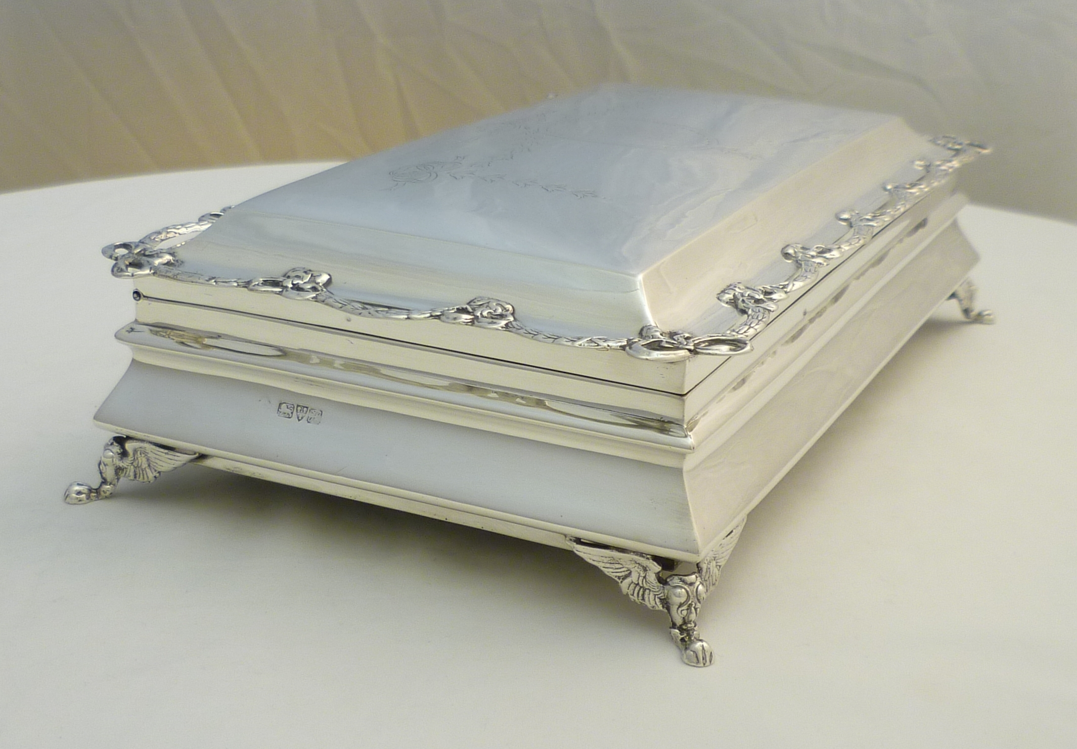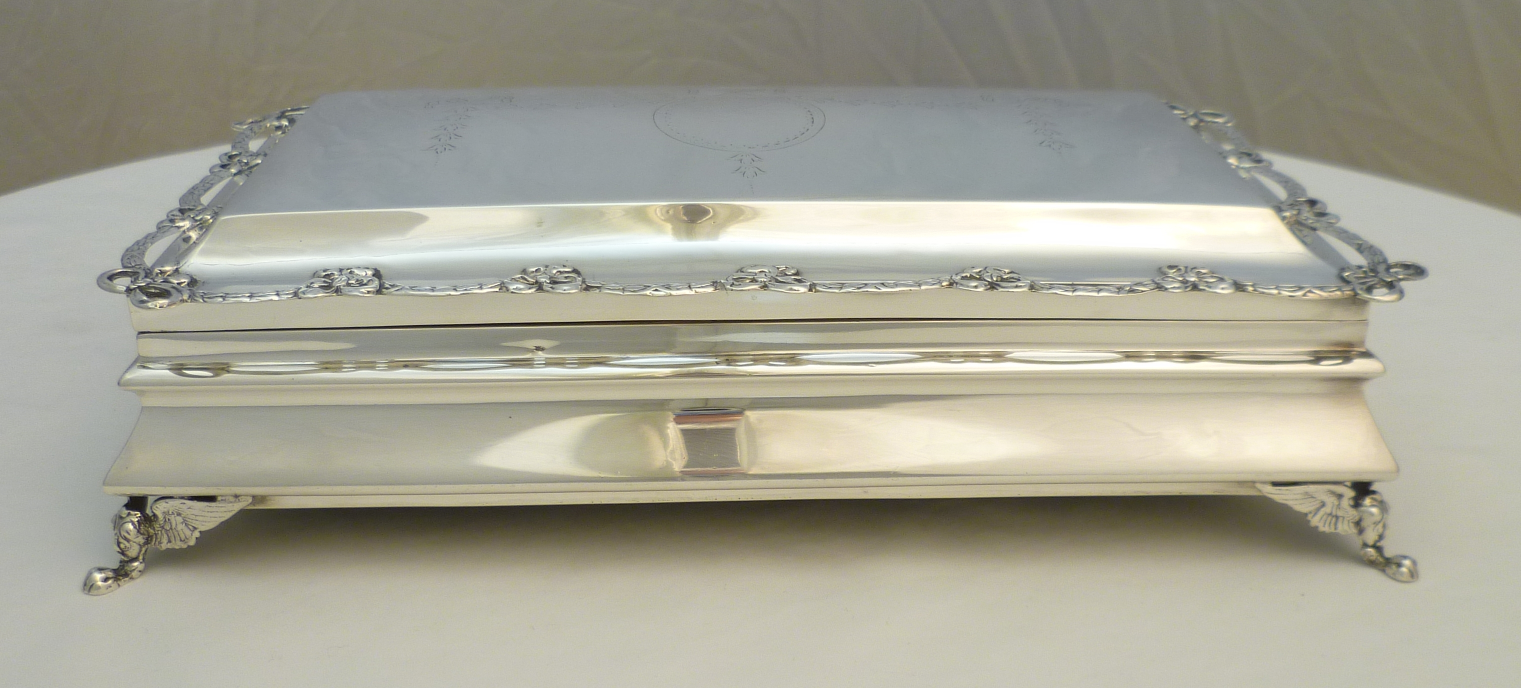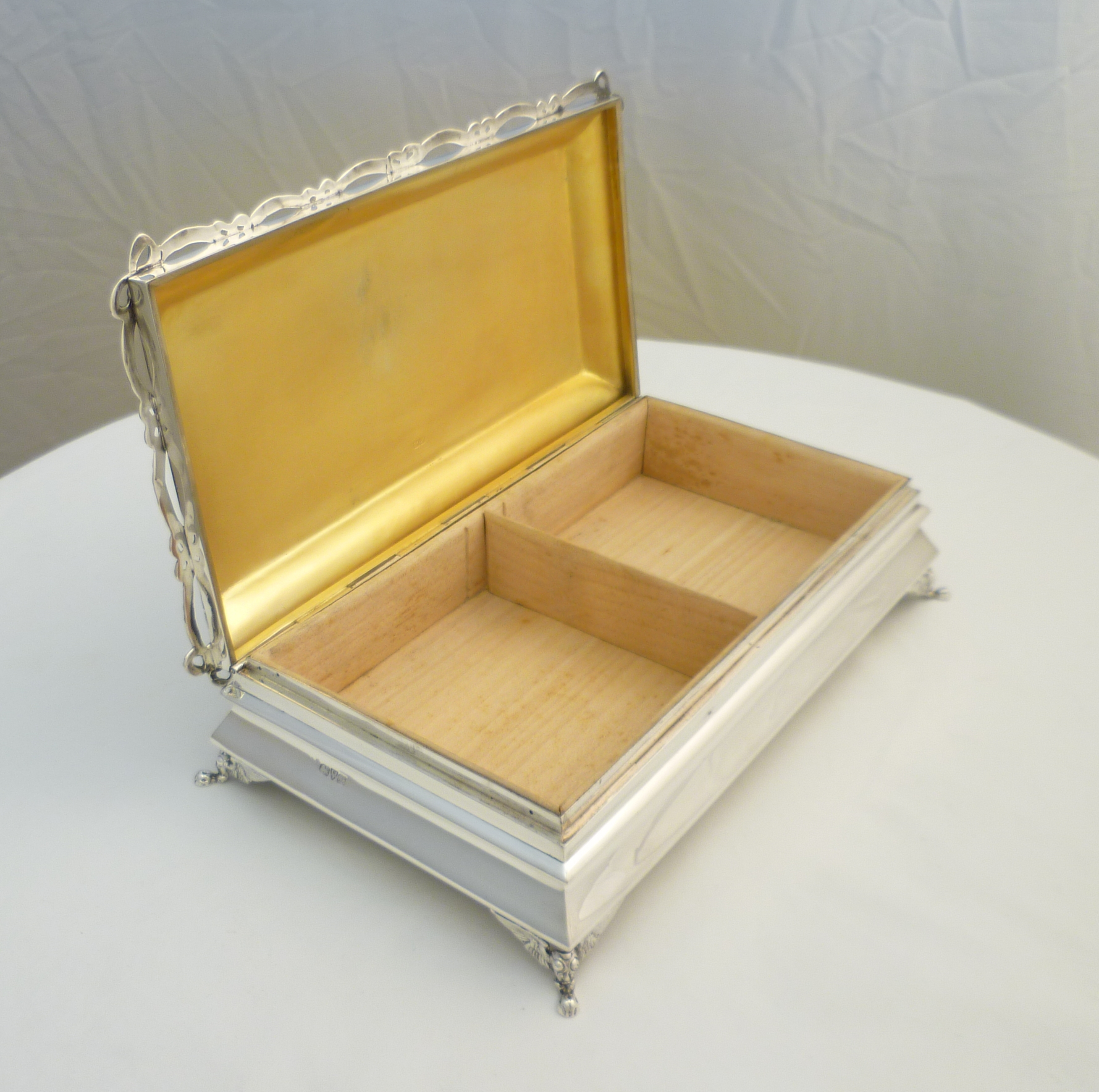 The whole supported by four cast solid silver winged mask feet. The removable wood partition has three positions.