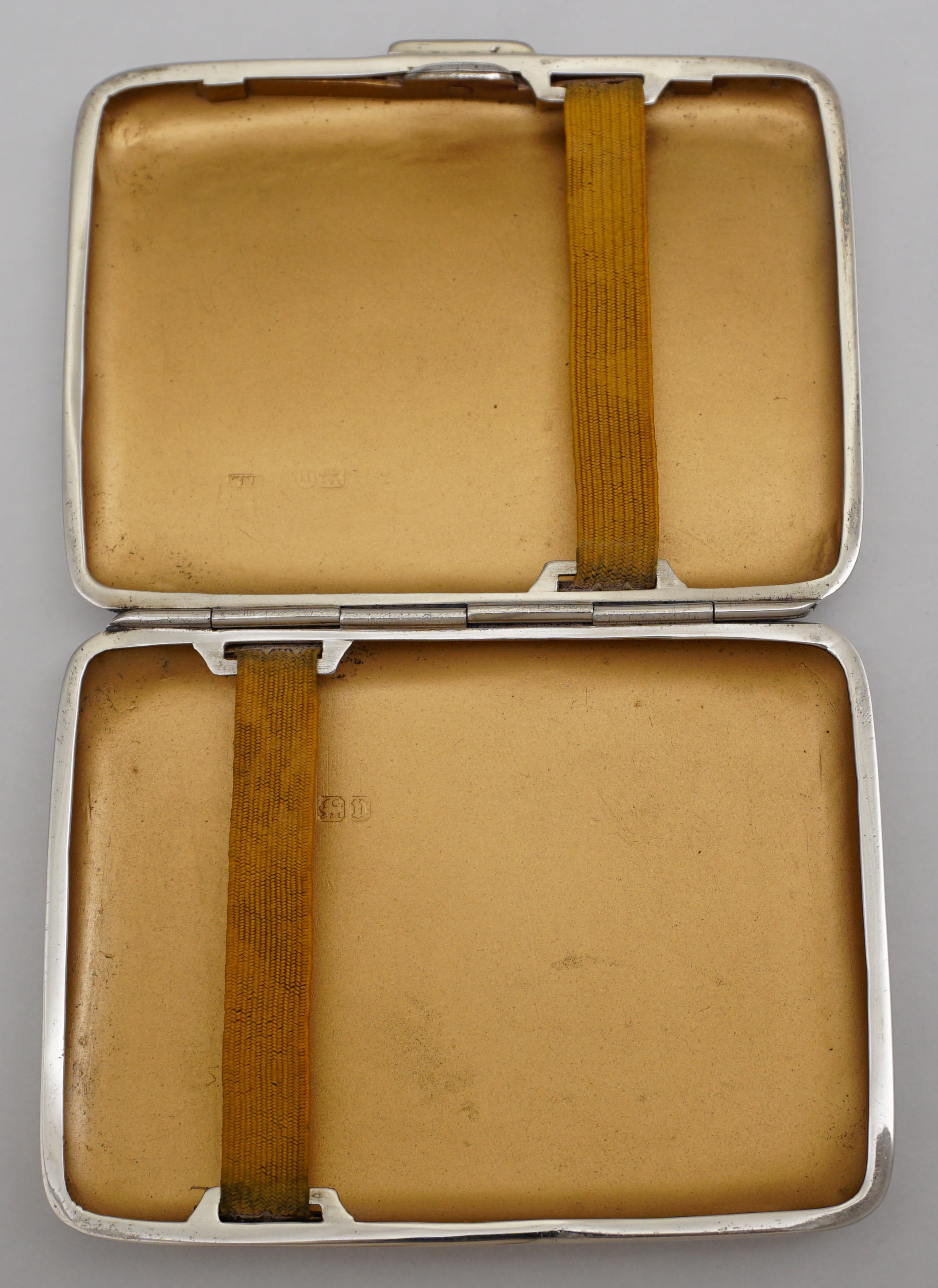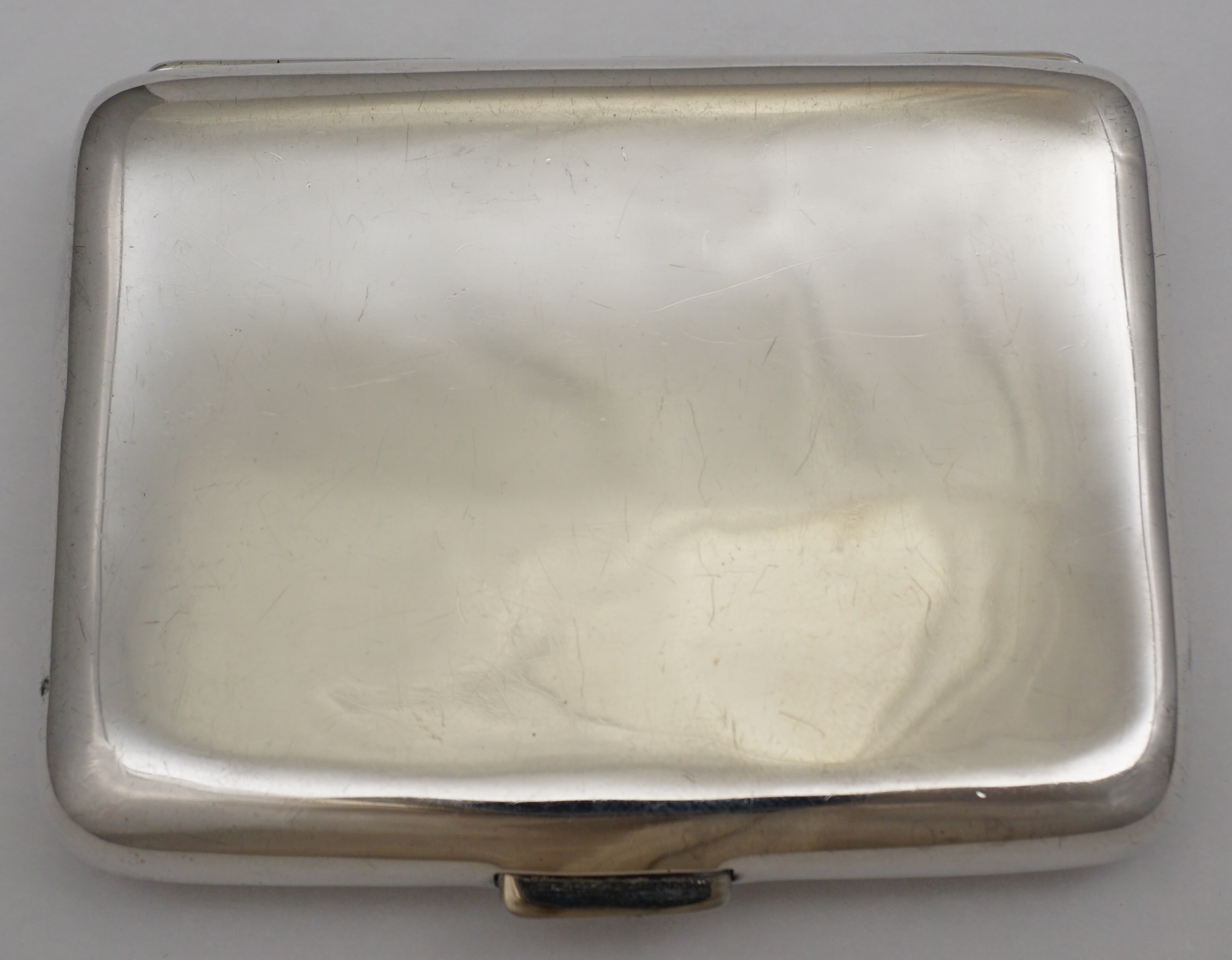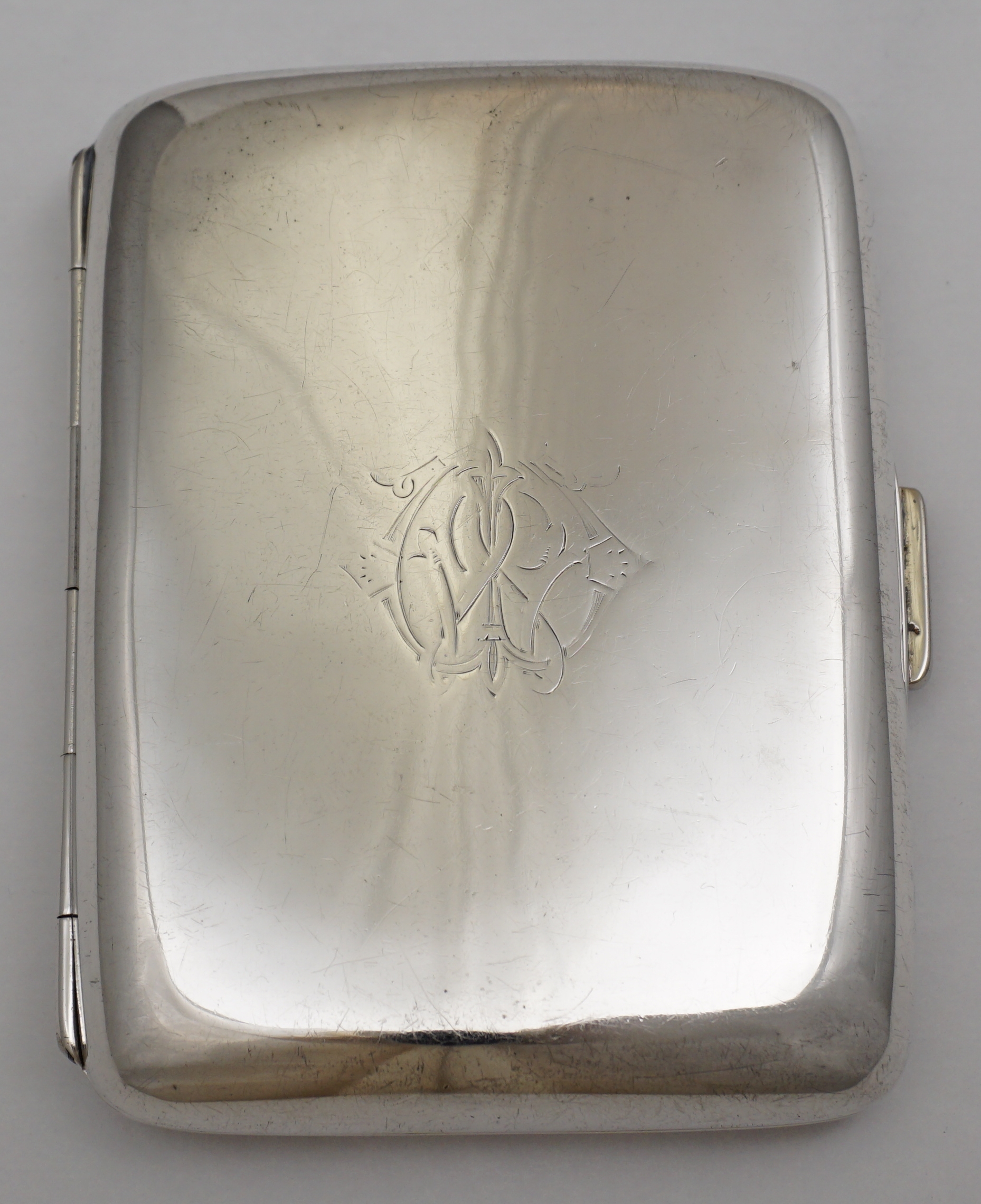 DESCRIPTION | Useful vintage English solid sterling silver cigarette case with a fully gilded interior and frontal monogram engraving. |