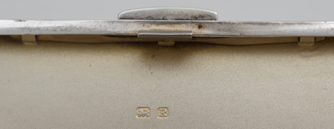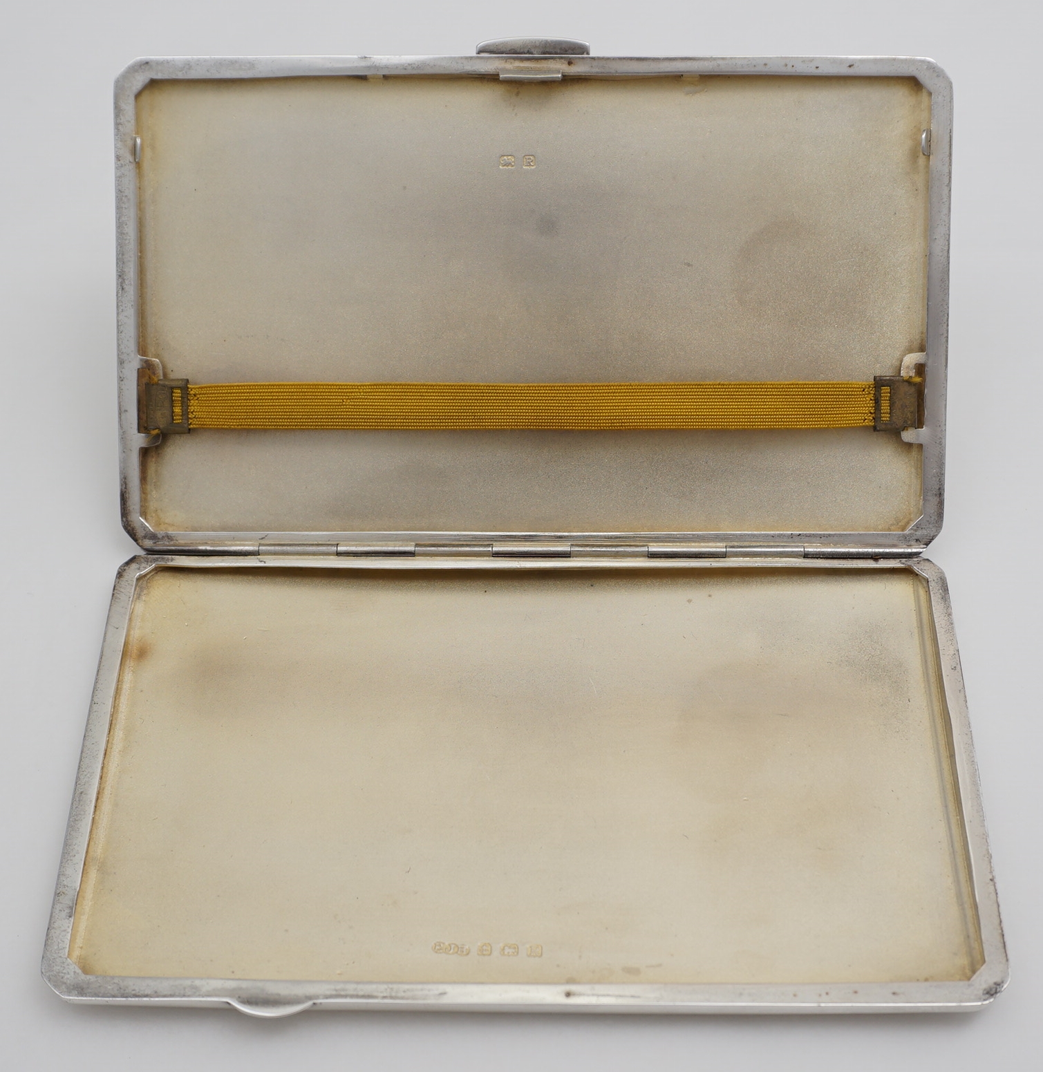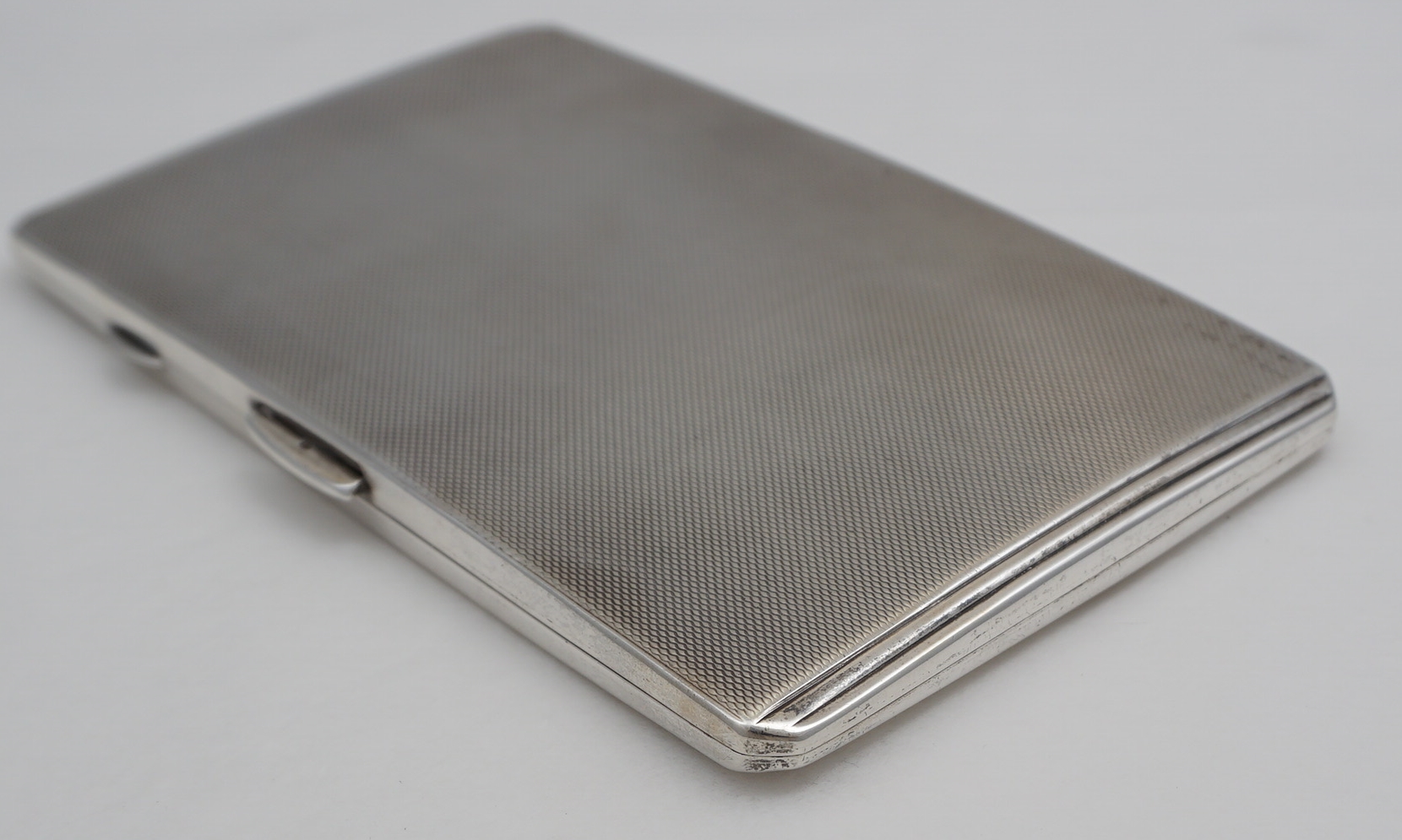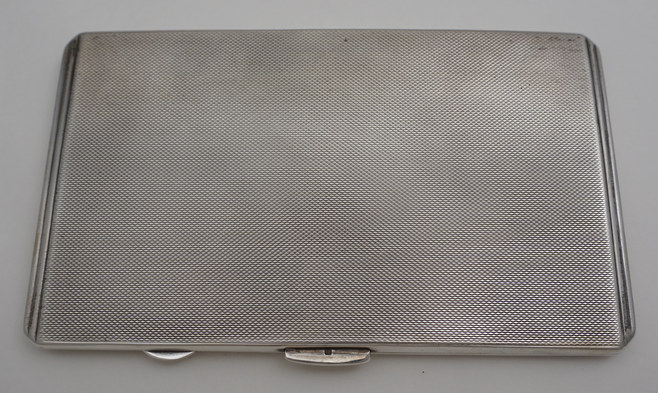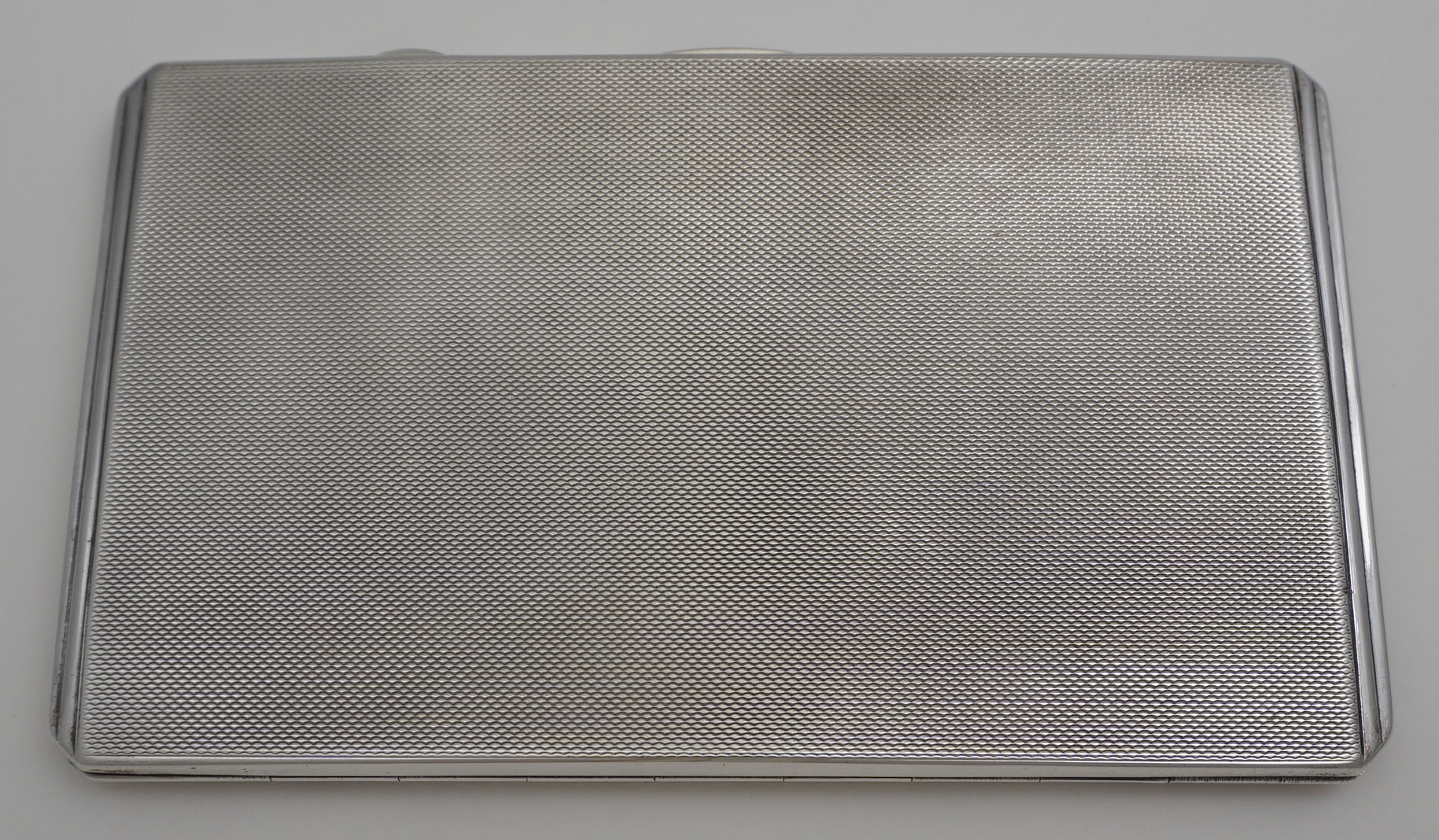 DESCRIPTION | Large, heavy and impressive vintage Art Deco English solid sterling silver gilt cigarette case with engine turned engraved decoration and a matt gilded interior. |