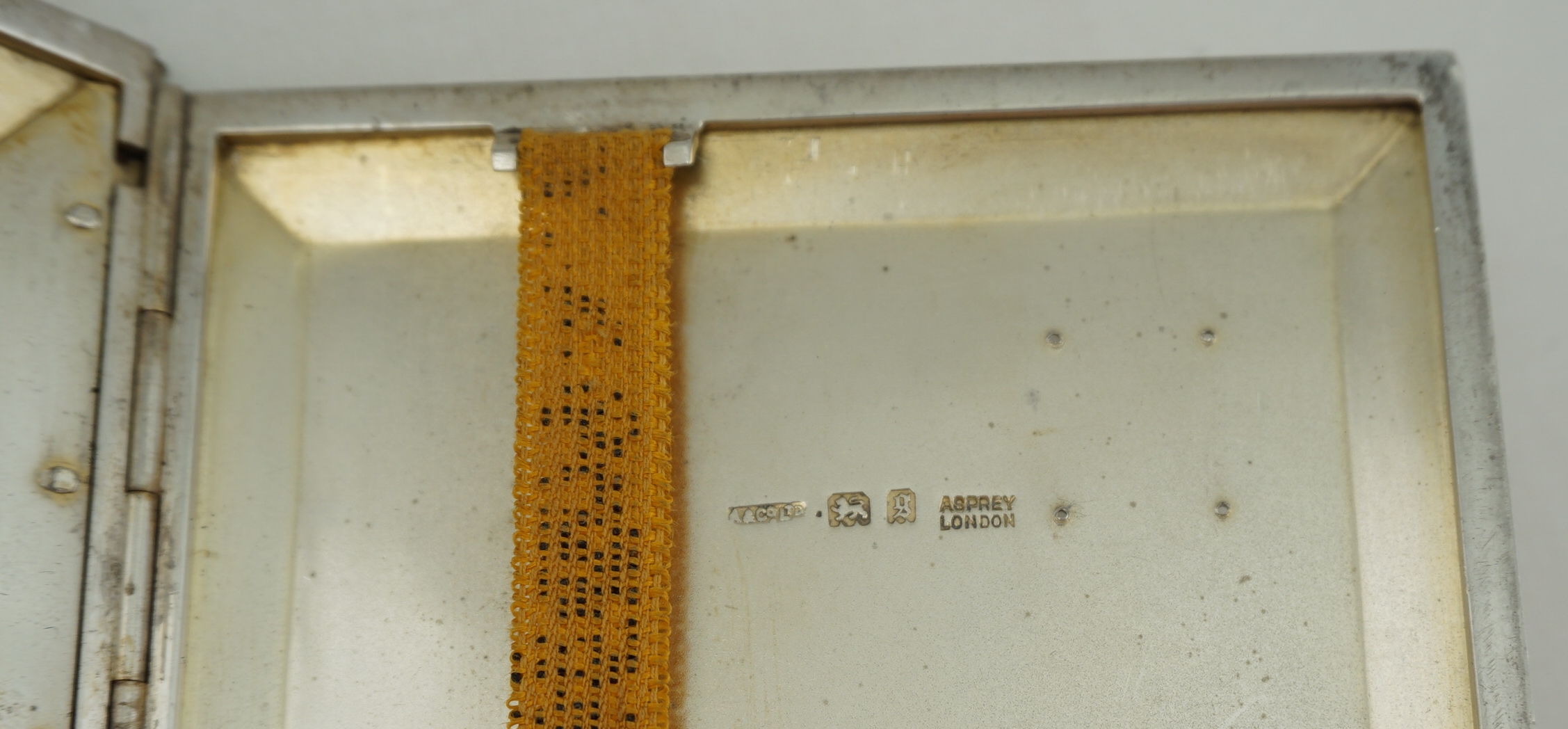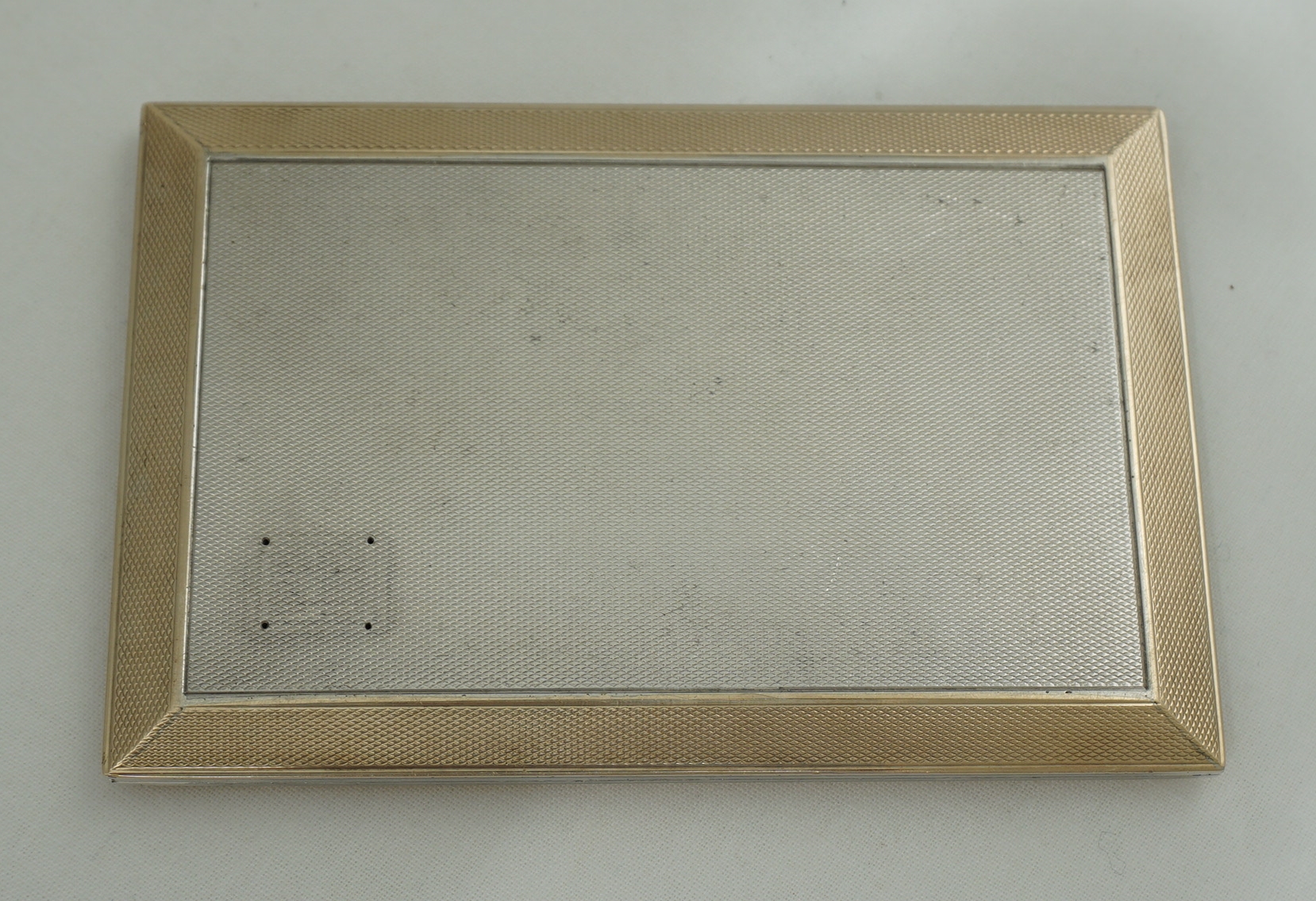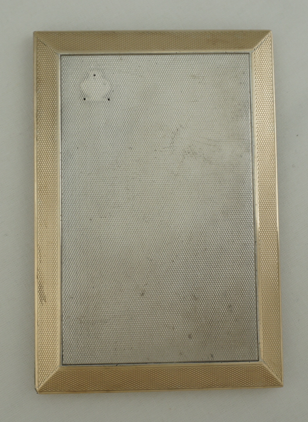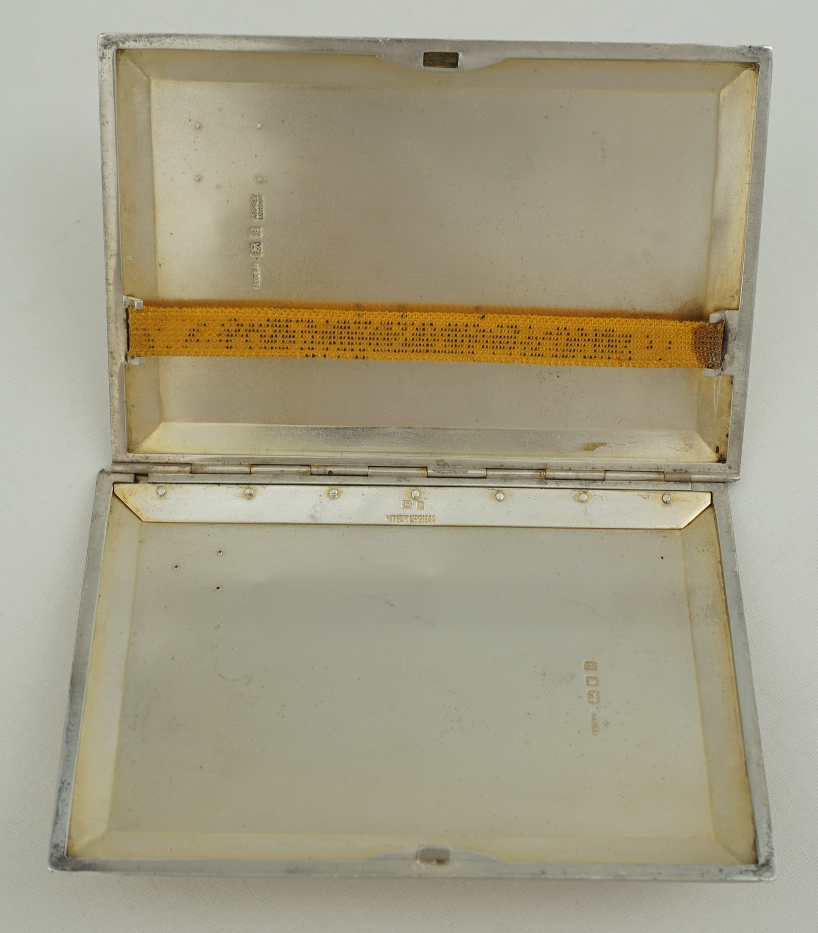 DESCRIPTION | High quality large antique English solid sterling silver slide action cigarette case with engine turned engraved decoration and a matt gilded interior. The gold to the outside is not simply plated but is an applied sheet of measurable thickness, my guess about 0.5mm. Three pinholes to one side and four to the other indicate that some form of personalisation has been removed. I have not polished those areas so that it is obvious where they are. An opportunity to have your own personalisation applied. |