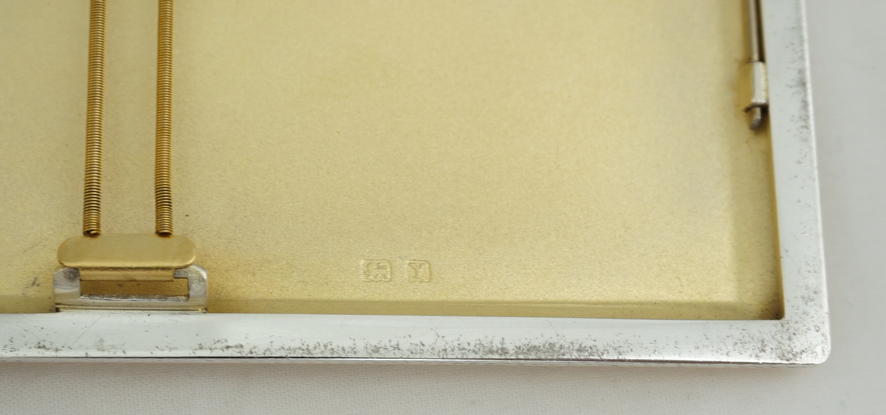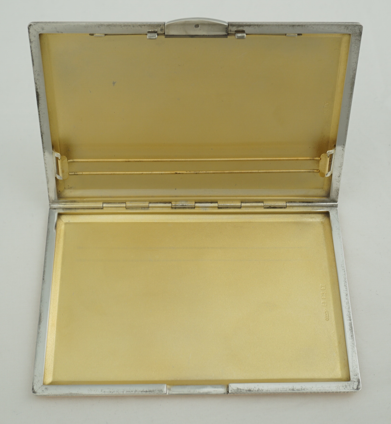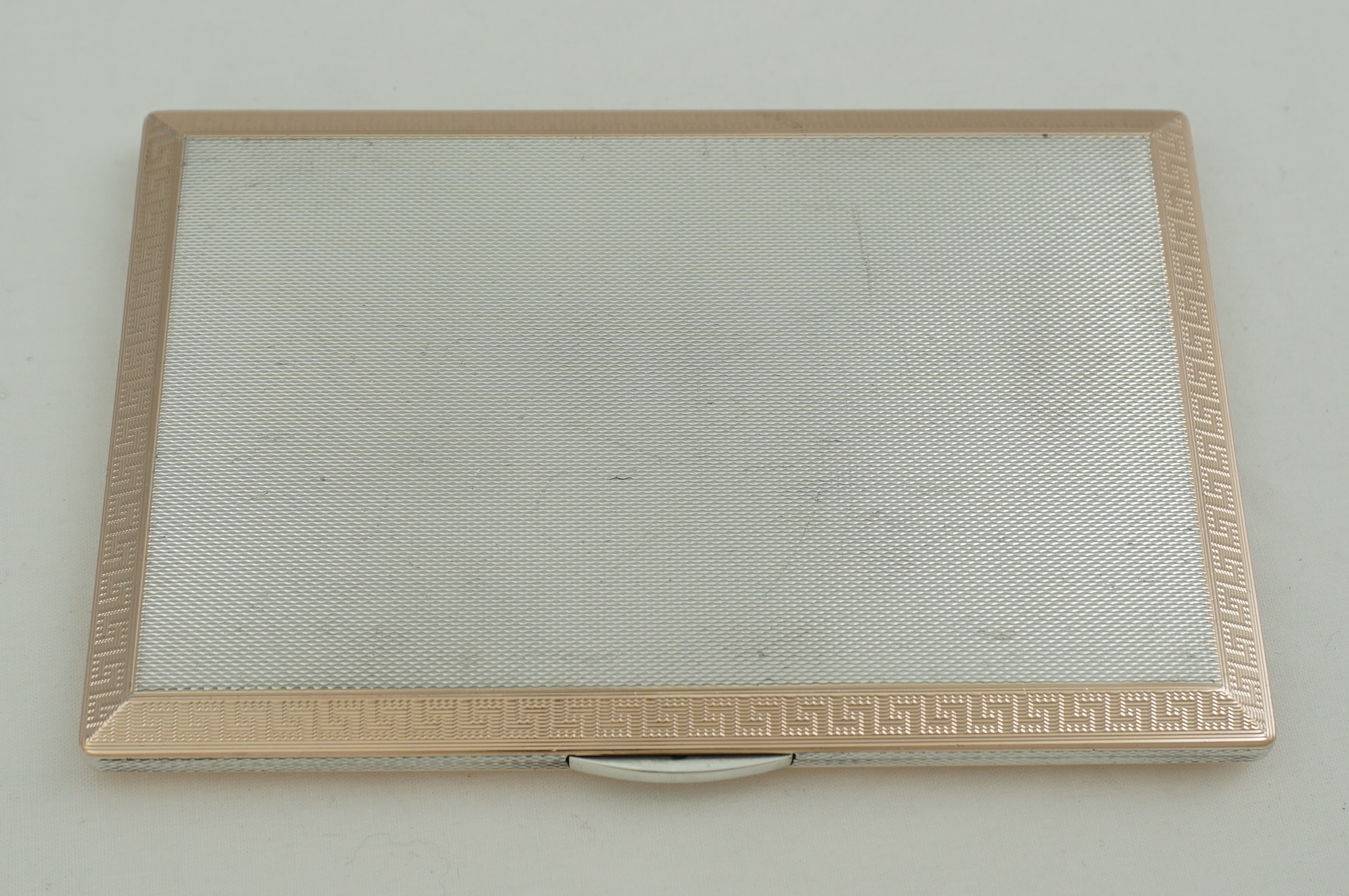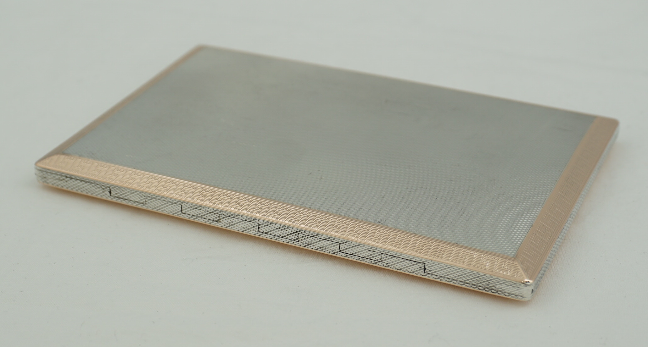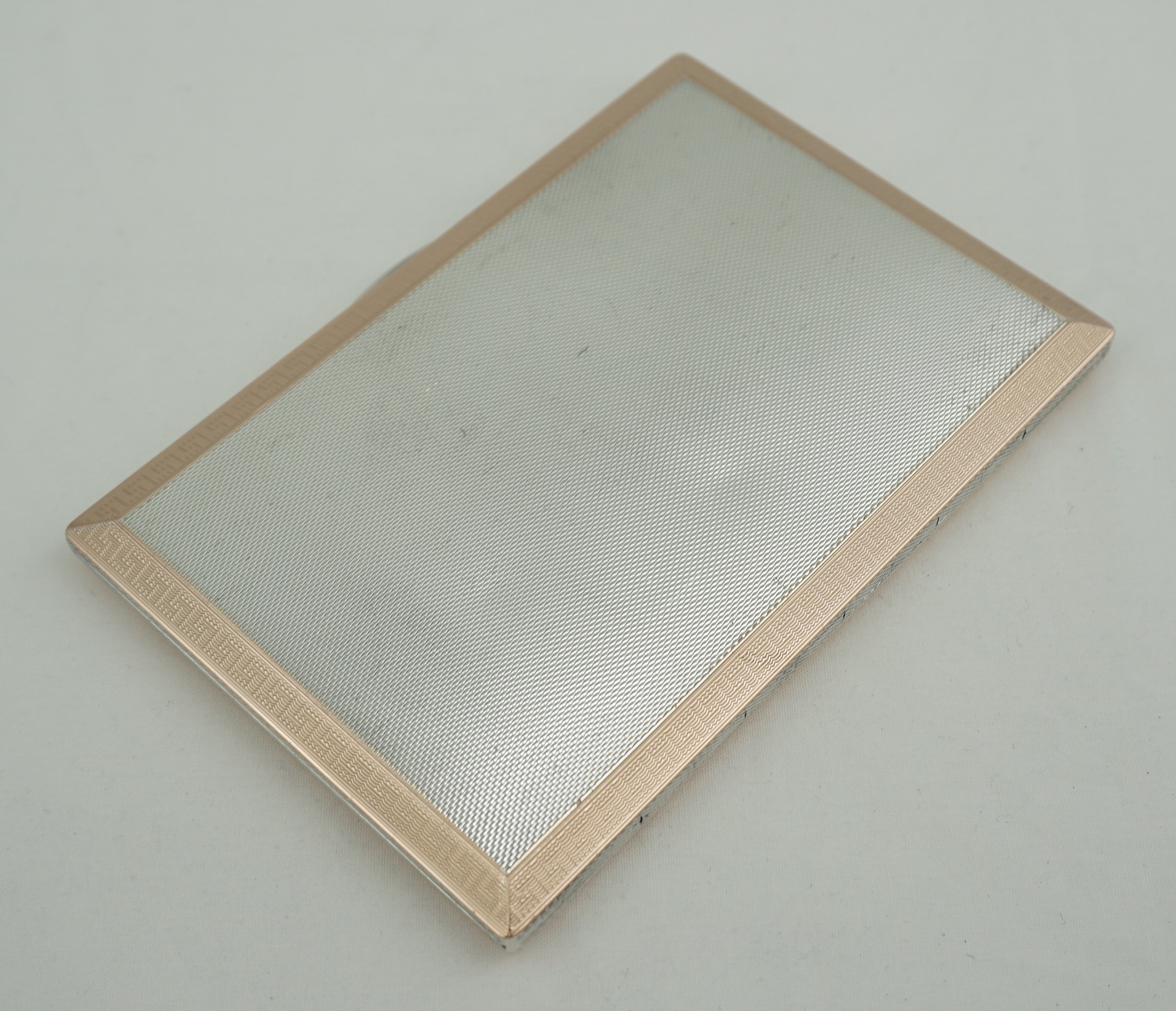 DESCRIPTION | Stunning, high quality, vintage English solid sterling silver and gold cigarette case with concealed hinge, engine turned engraved decoration and a matt gilded interior. |