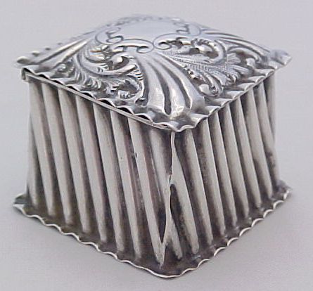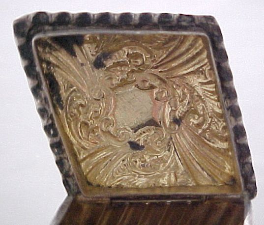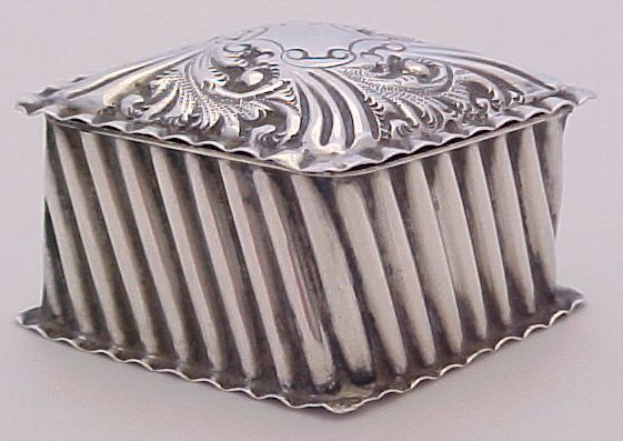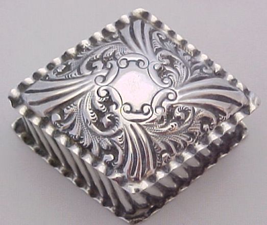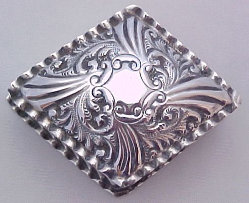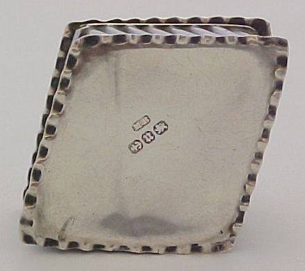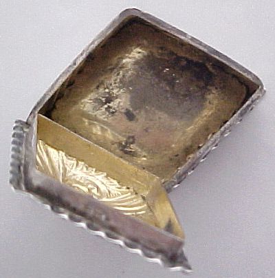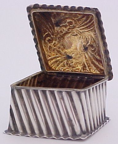 Useful Victorian silver lozenge shaped drug or snuff box with a gilded interior and a well fitting hinged lid. |