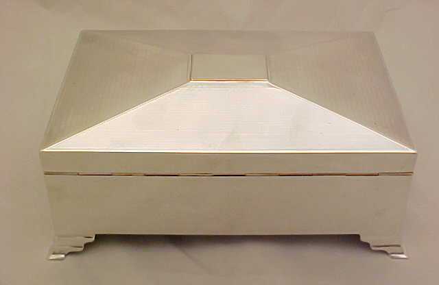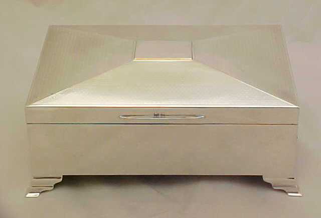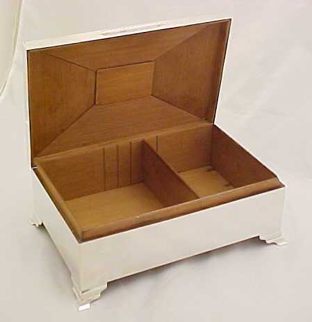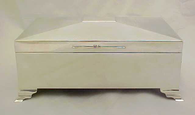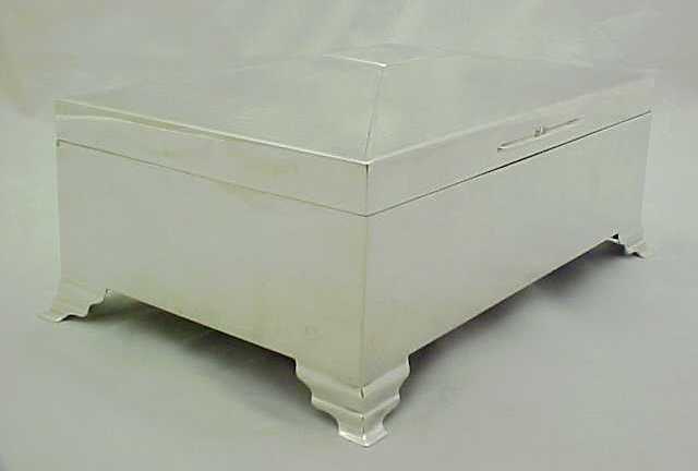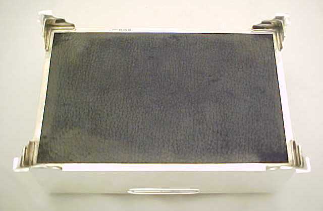 Very large silver cigarette box with a blank cartouche and alternating engine turned engraving to the lid and fully cedar lined within. The box is correctly hallmarked to the base and lid and the cedar lining still smells good. The internal divider has five positions. |