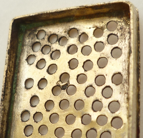 one side of the cornucopia lid engraving has gone through and can be seen on the inside. |