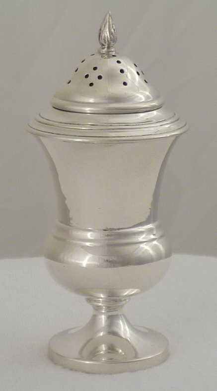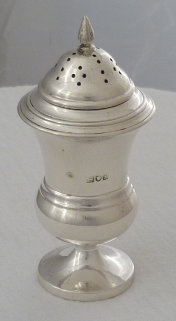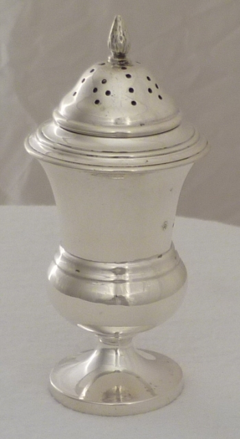 DESCRIPTION | Useful Edwardian silver pepper caster with a flame finial. |