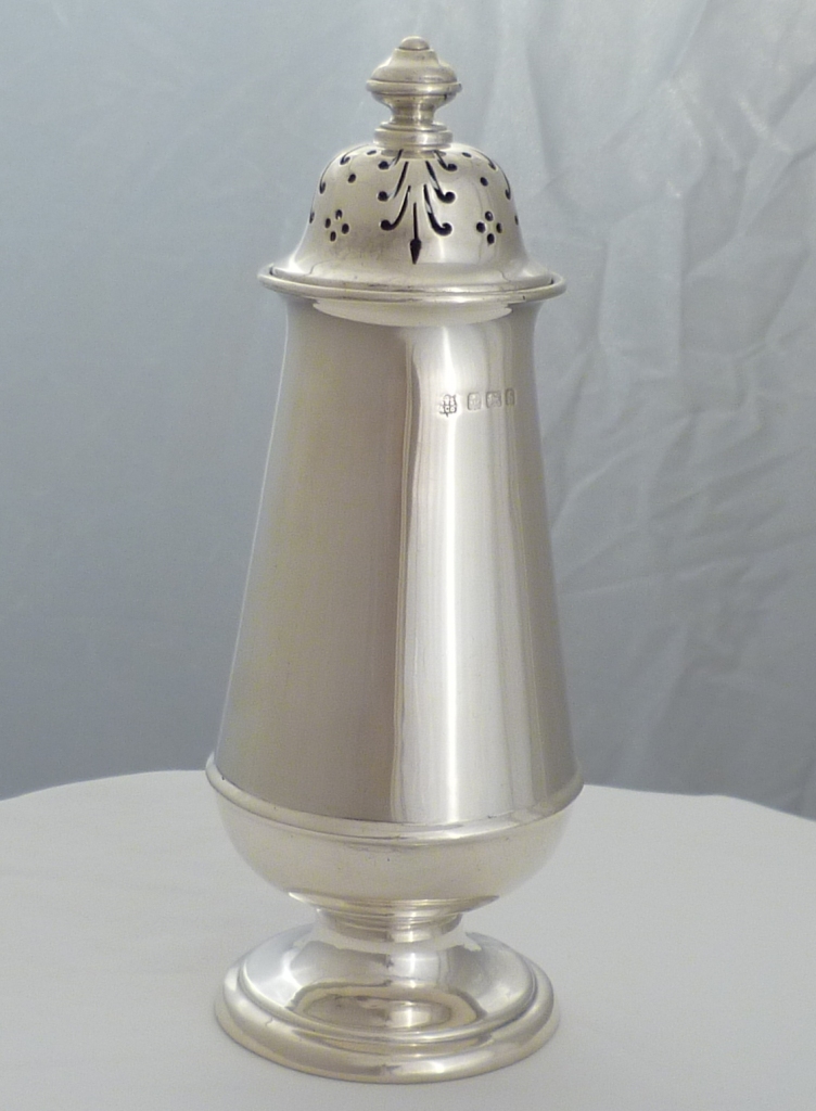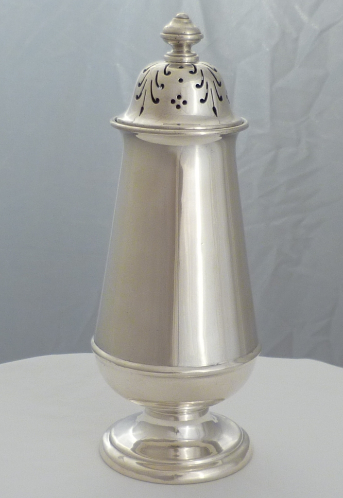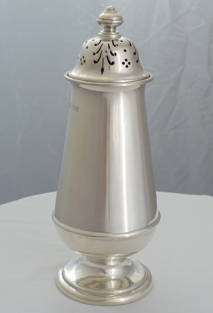 DESCRIPTION | Good quality and surprisingly heavy silver caster with a pull off top. |