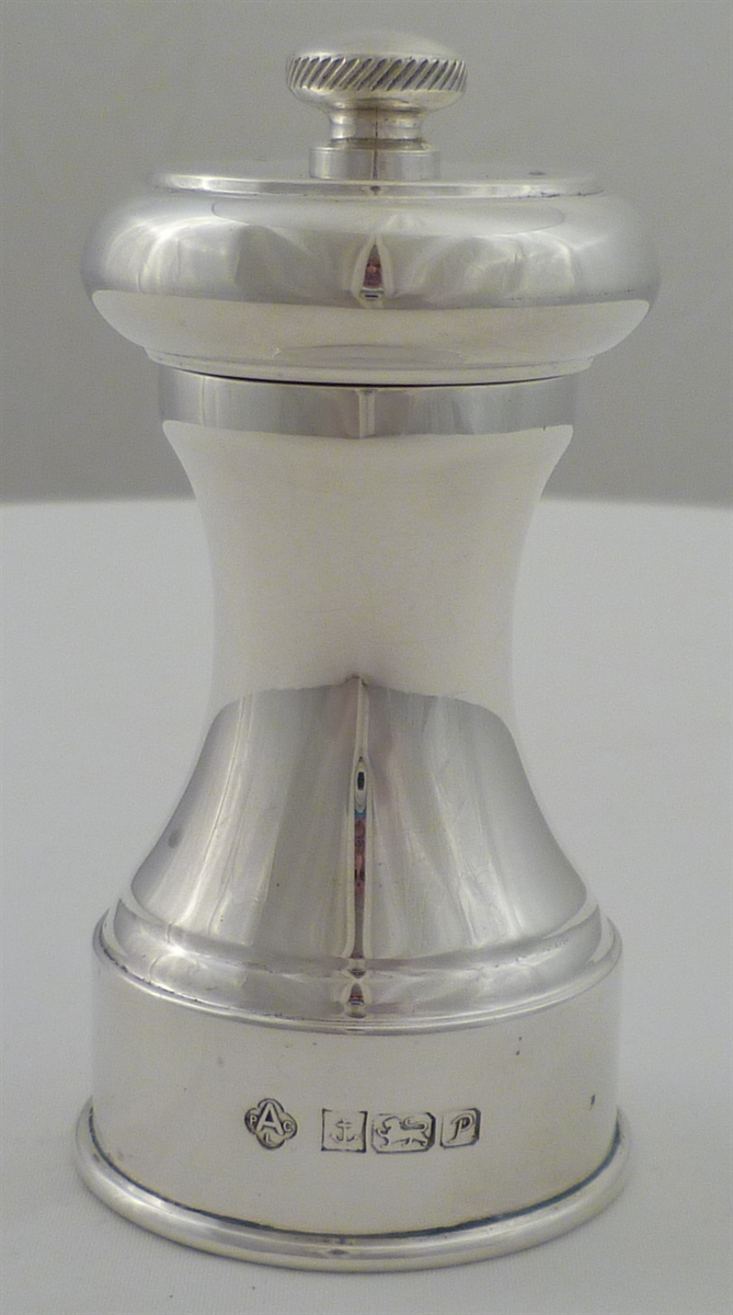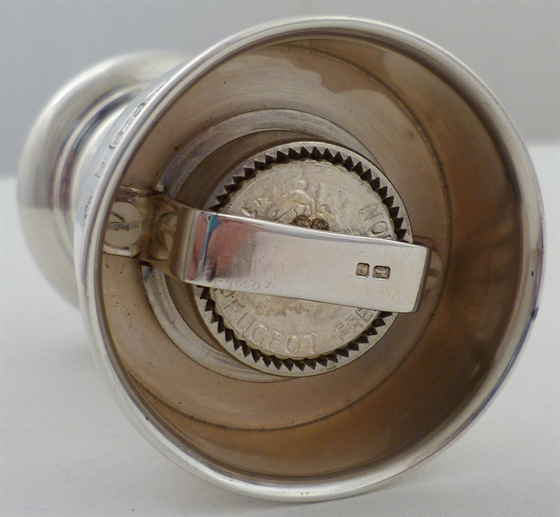 DESCRIPTION | Superb solid silver pepper mill (grinder) with a high quality steel mechanism by Peugeot Freres. |