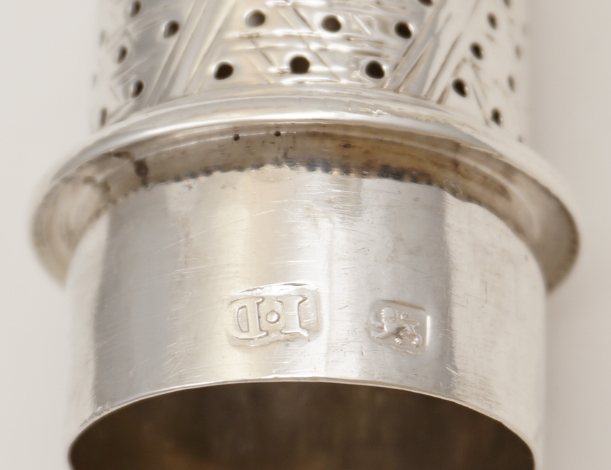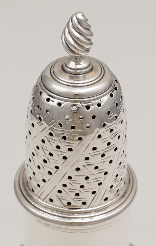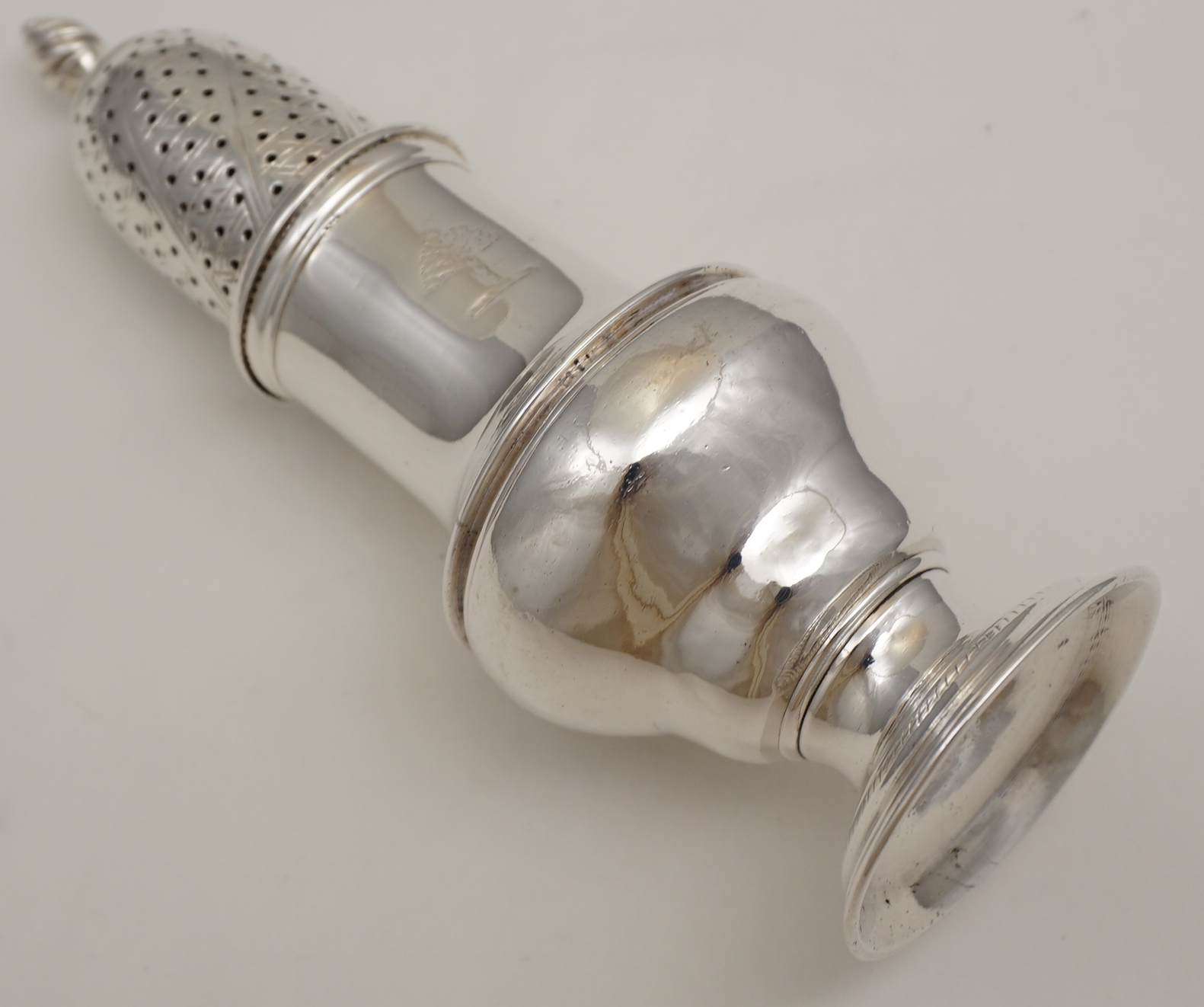 SILVERSMITH | Jabez Daniell, from a continuous line of specialist caster makers beginning with Charles Adam apprenticed to Francis Archbold 1682, Thomas Bamford apprenticed to Charles Adam 1703, Samuel Wood apprenticed to Thomas Bamford 1721, Jabez Daniell apprenticed to Samuel Wood 1739, Robert Piercy apprenticed to Samuel Wood 1750, James Mince apprenticed to Jabez Daniell 1753. The list probably extends backwards although my information does not but you will have the idea by now. |