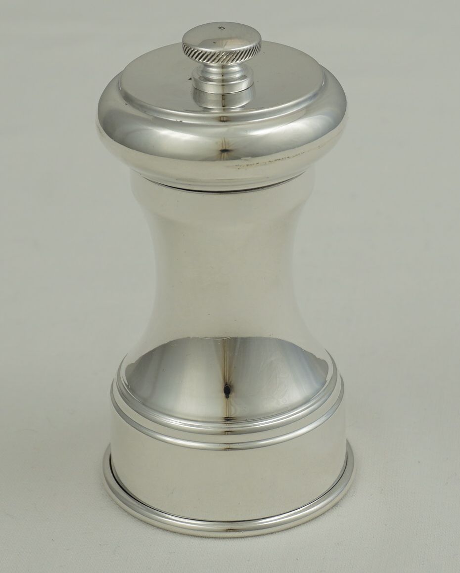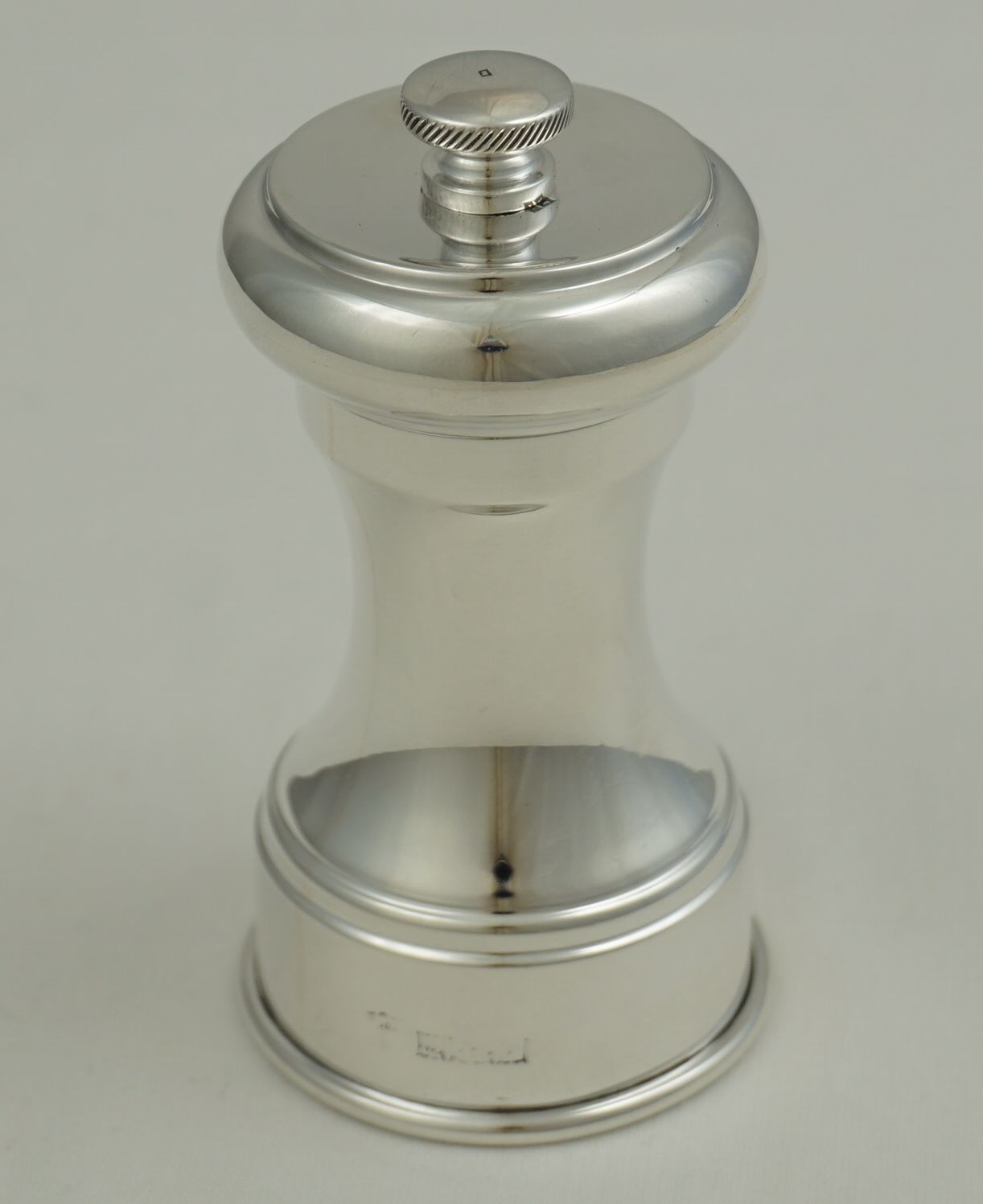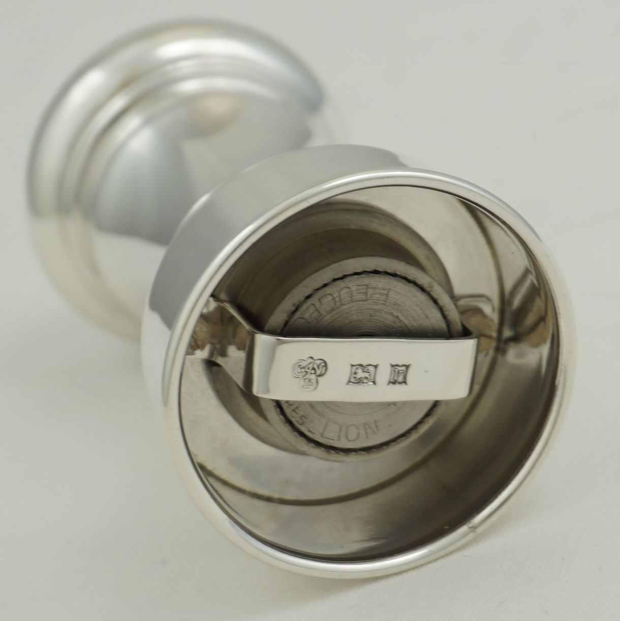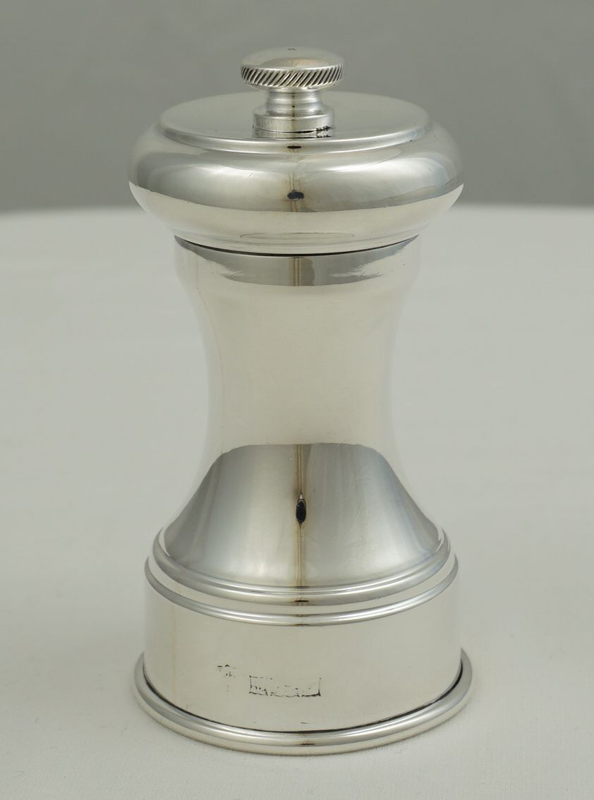 | DESCRIPTION | High quality vintage English solid sterling silver pepper grinder with the high quality Peugeot Freres Lion steel mechanism and in 'as new' condition. |