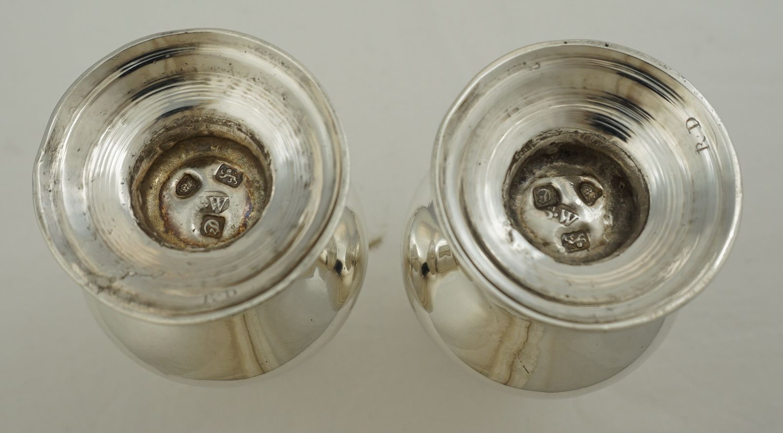 | CONDITION | excellent, no engraving, thick silver, no bumps, no repairs, no leans, tightly fitting tops, the best pair that I have seen for a very long time. |