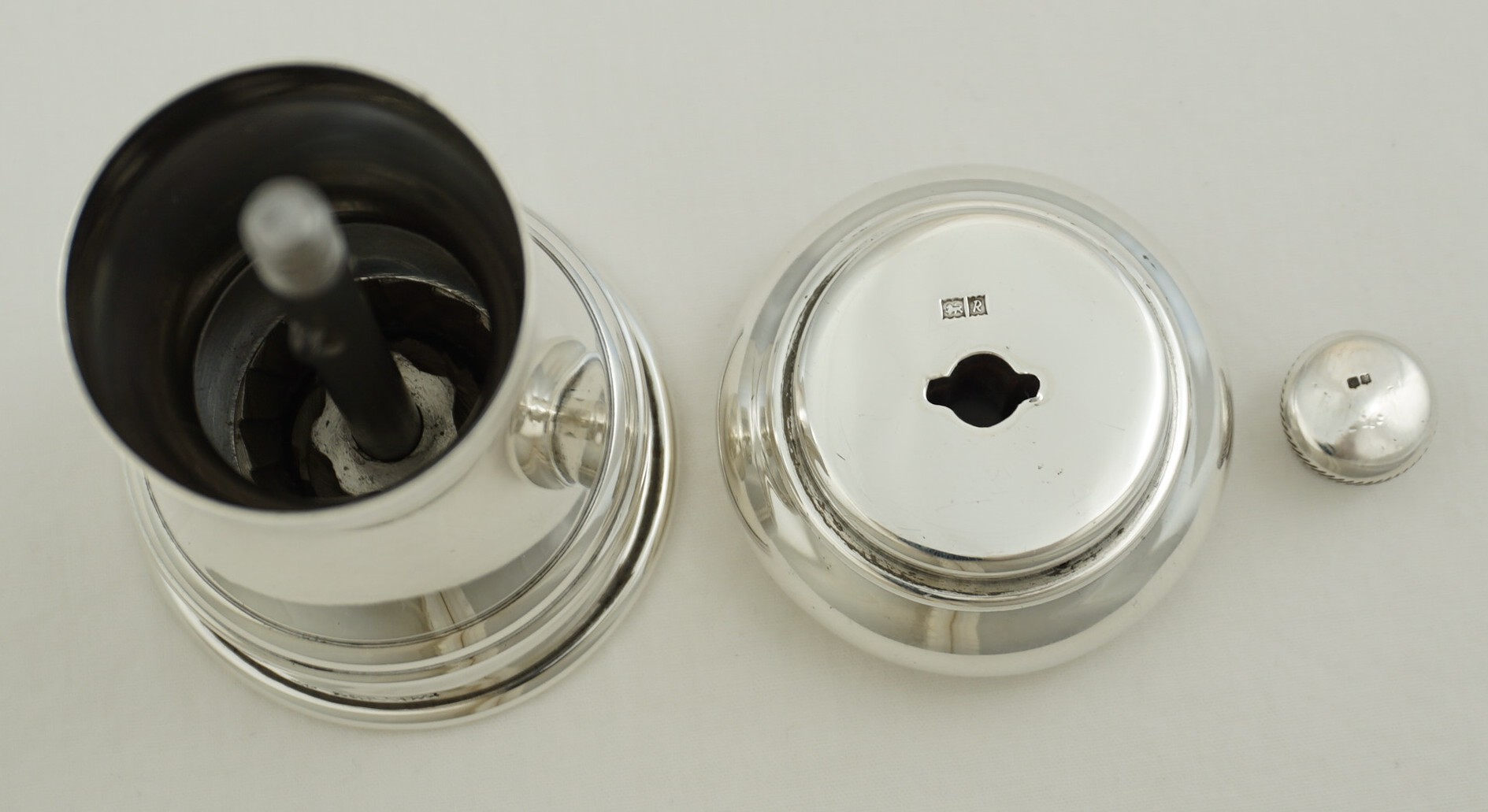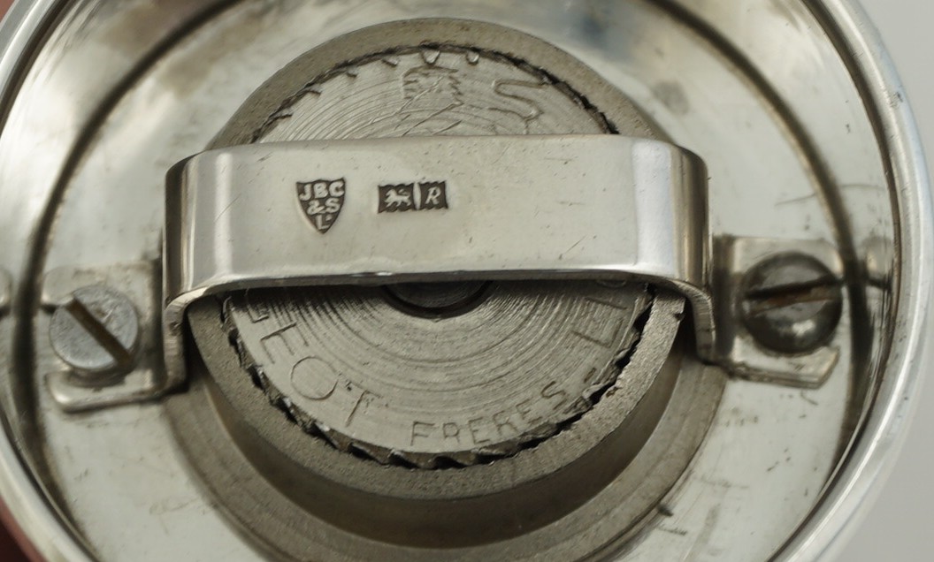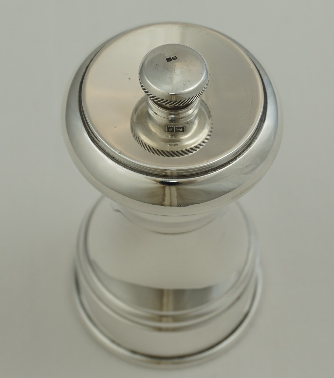 | DESCRIPTION | Good quality vintage English solid sterling silver pepper grinder with the high quality Peugeot Freres Lion steel mechanism. |