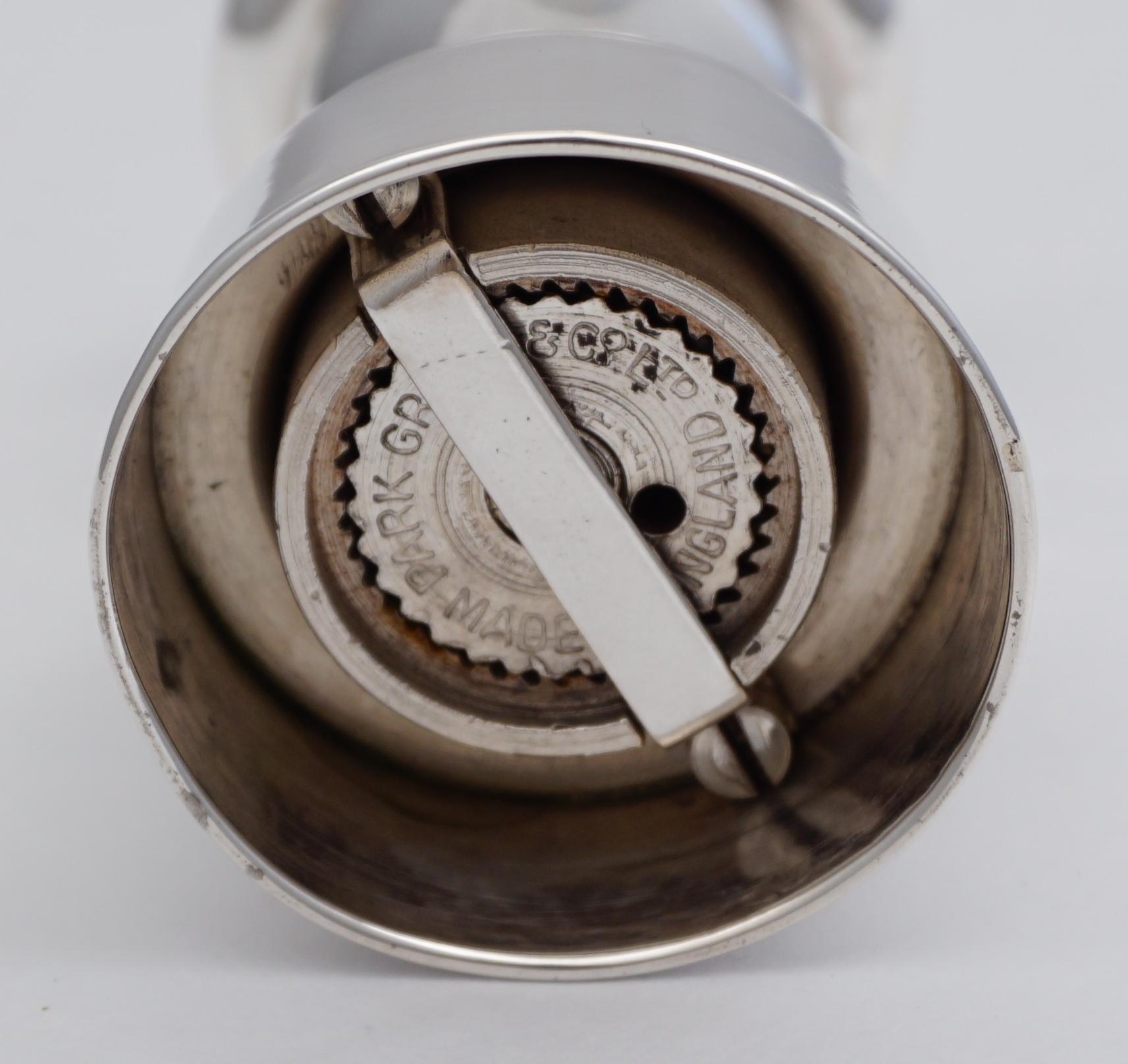 DESCRIPTION | Antique English Victorian solid sterling silver pepper mill with a top quality replacement mechanism by Park, Green of London. |