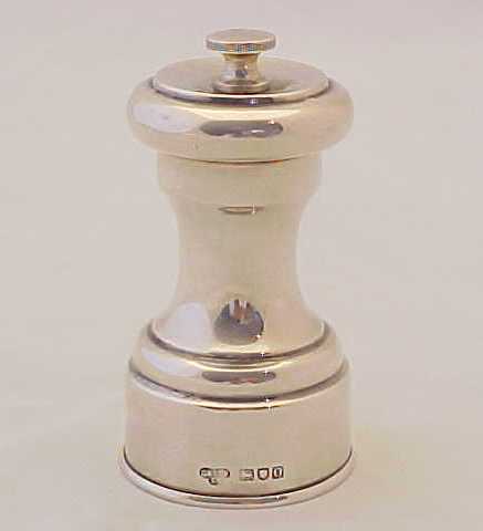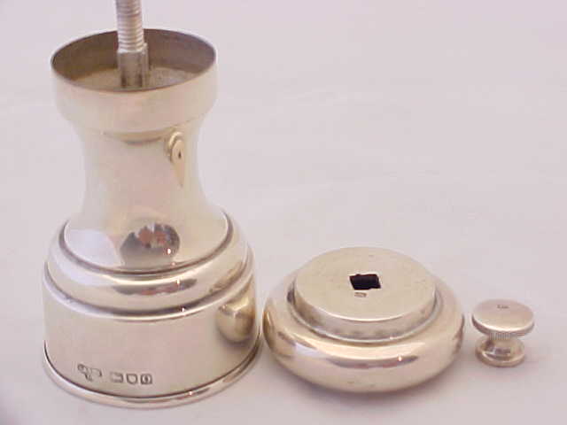 Useful Edwardian silver pepper grinder, correctly hallmarked throughout. |