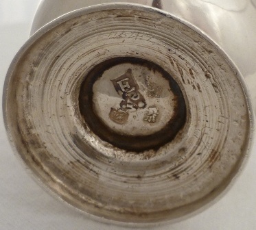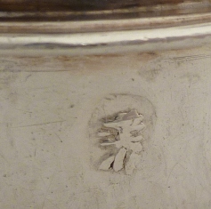 excellent. Substantial silver throughout and surprisingly original. Slight bumps to cover and the engraved line decoration is partly rubbed. No thin spots at all but I would expect such as piece to bear an engraving so I suspect an erasure to the body although none is apparent. The vertical and horizontal dark bands around the girdle and foot are reflections only, the metal is a good colour throughout and with no firestain. |