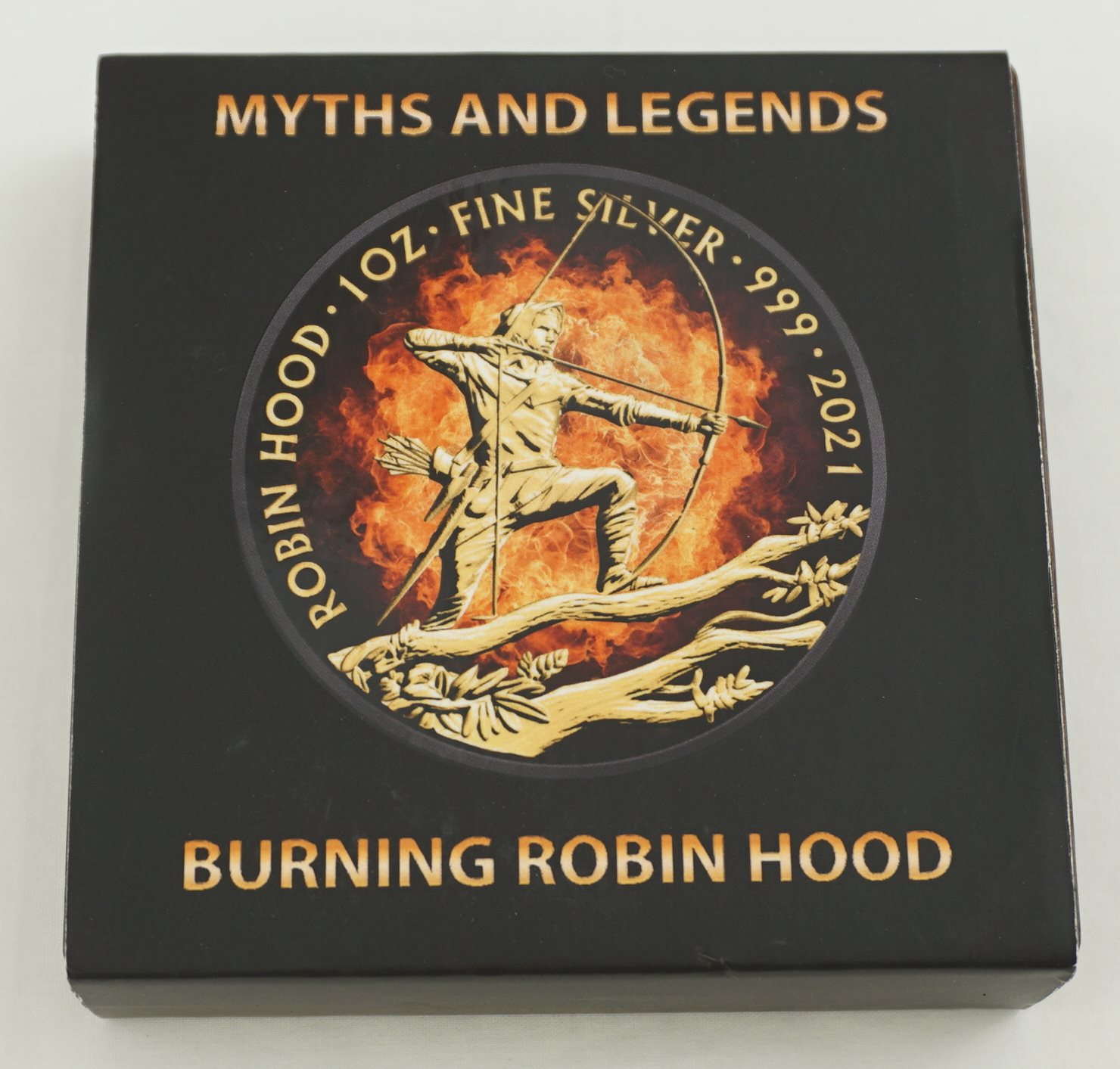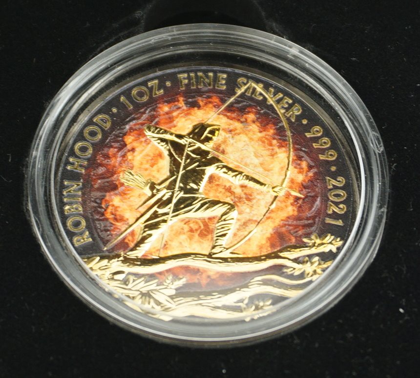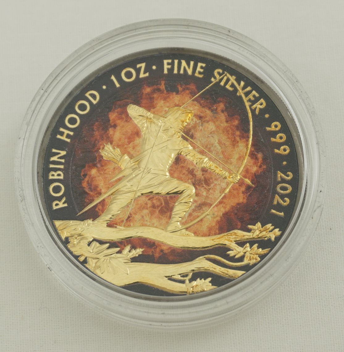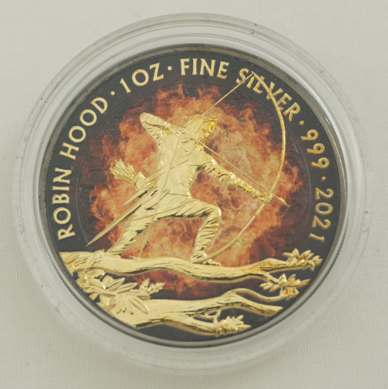 DESCRIPTION | Burning Robin Hood £2 coin from The Royal Mint's Myths and Legends series. |