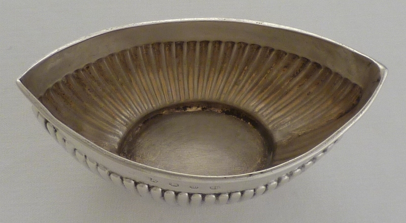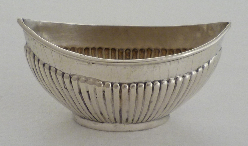 DESCRIPTION | Small, almost a miniature, Victorian silver navette shaped salt with fluted sides. |