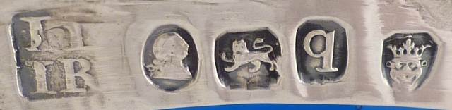 overstrike of John Langlands & John Robertson, significant Newcastle manufacturers and also re-sellers of London made silver. The London maker's beneath appears likely to be that of Peter & Ann Bateman. |