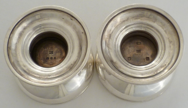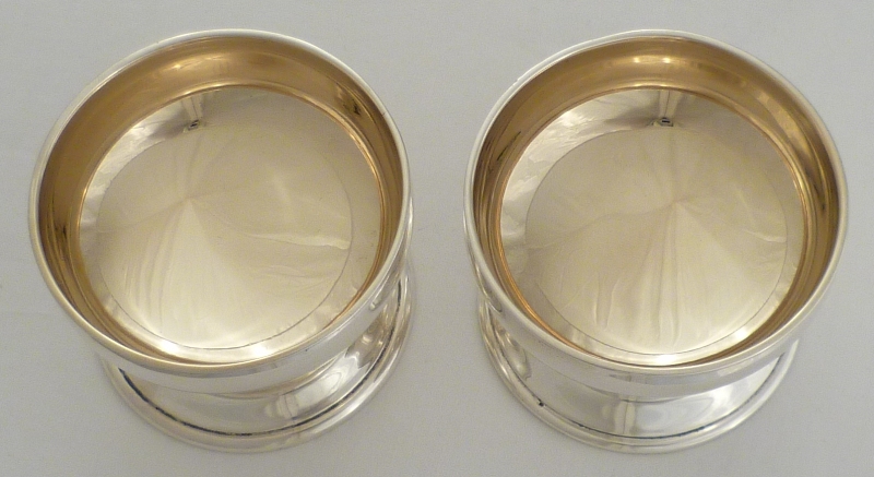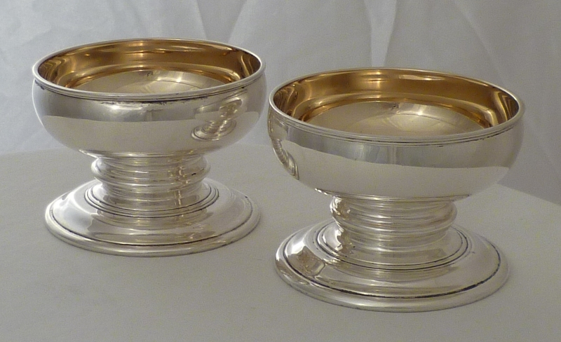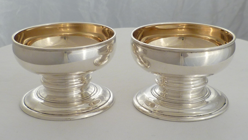 DESCRIPTION | Spectacular pair of Edwardian silver spool shaped salts with gilded interiors. |