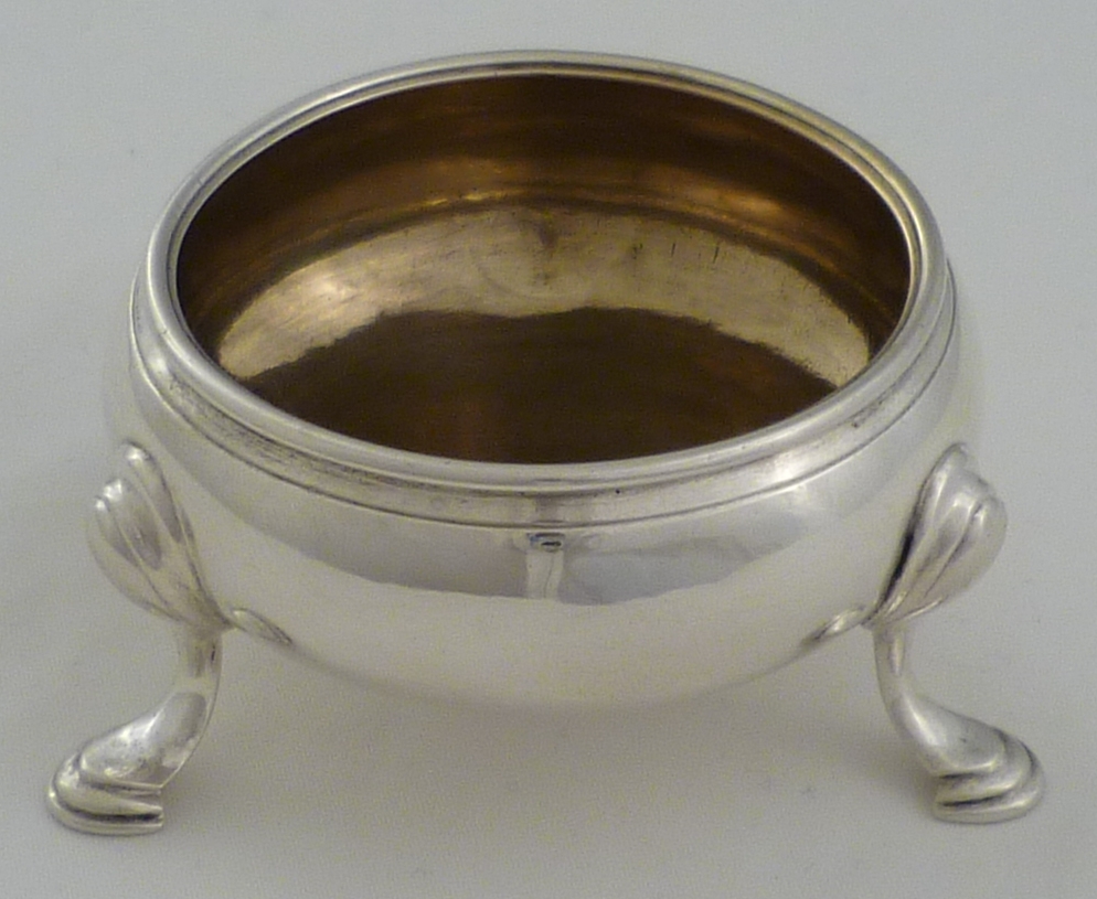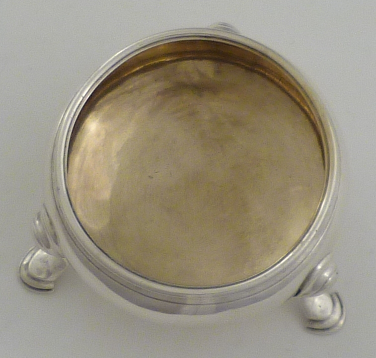DESCRIPTION | Georgian silver cauldron salt with a gilded interior and no engraving. |
