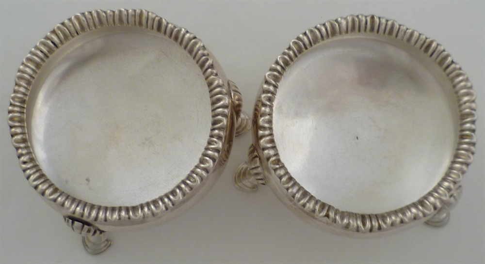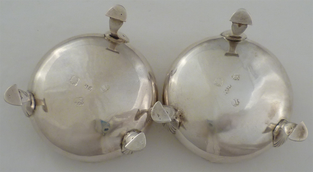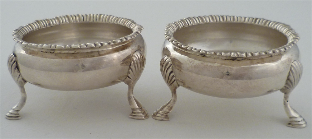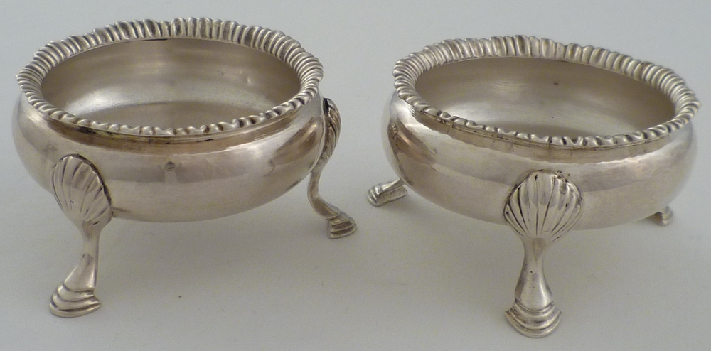DESCRIPTION | Good pair of Georgian silver cauldron salts with shell capped hoof feet. |