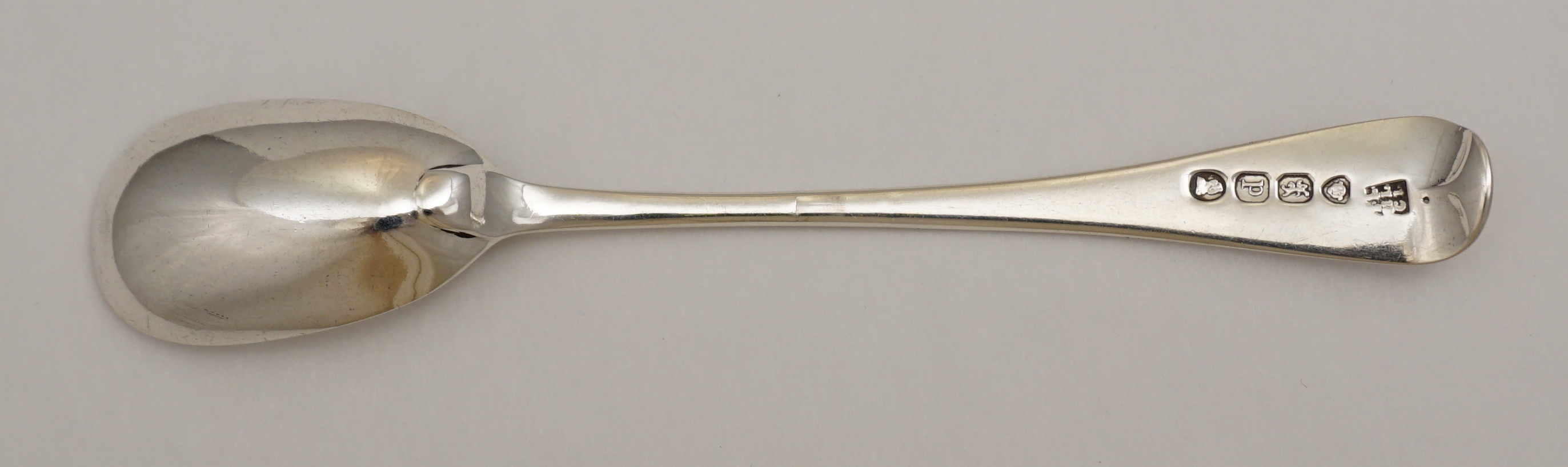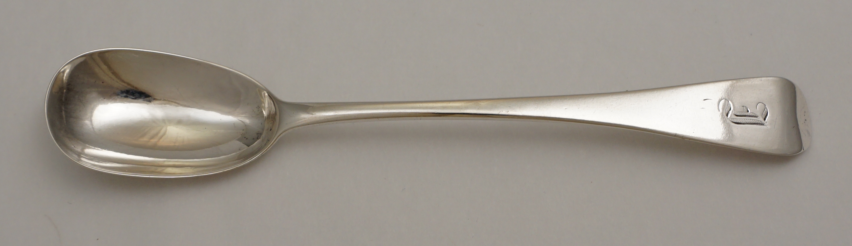 DESCRIPTION | Antique English William IV solid sterling silver Old English pattern mustard ladle with a frontal initial engraving. |