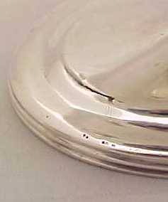 one pedestal foot has worn through to the high point of one ridge, less than 1/2" long, see the sixth image. |