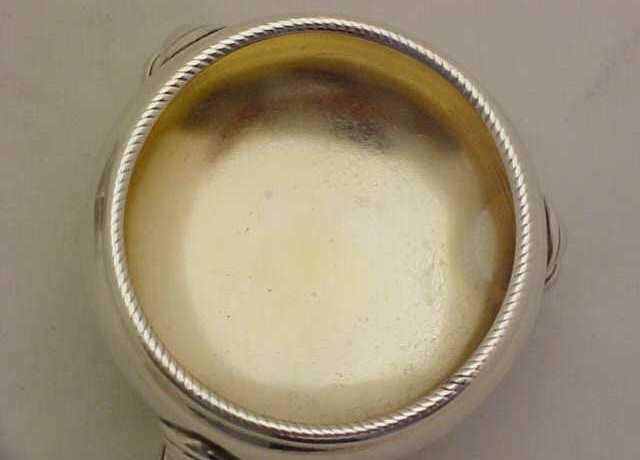 good used, the silver is nice and thick, a good pair of robust salts for daily use. Below the later gilding are some surface marks and scratches but this later gilding makes them now safe for food use and will prevent the salt corroding the silver. |