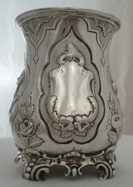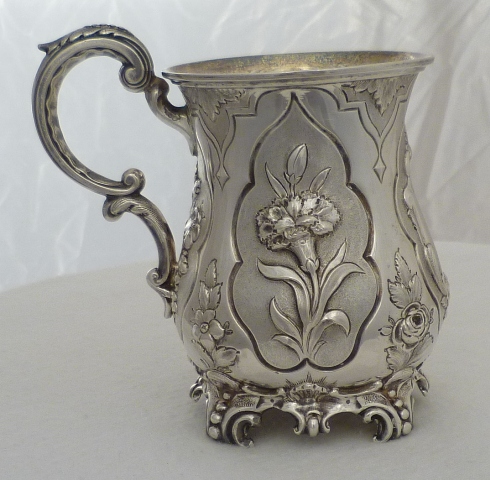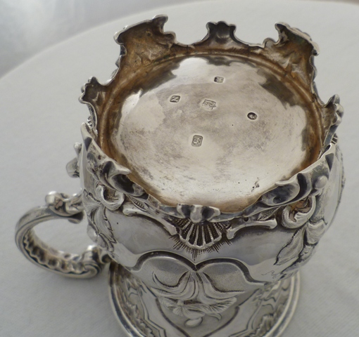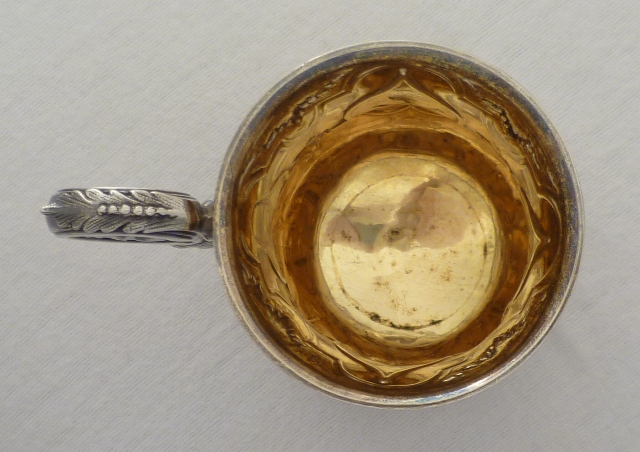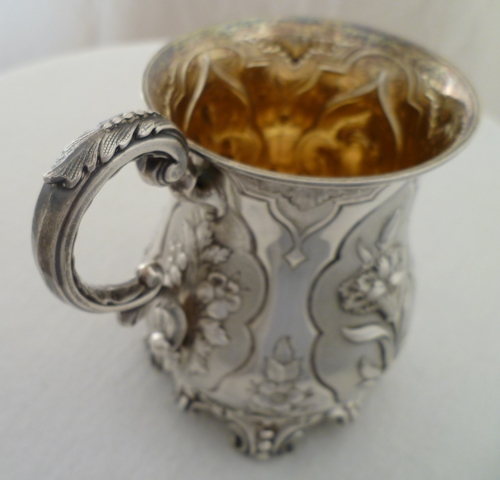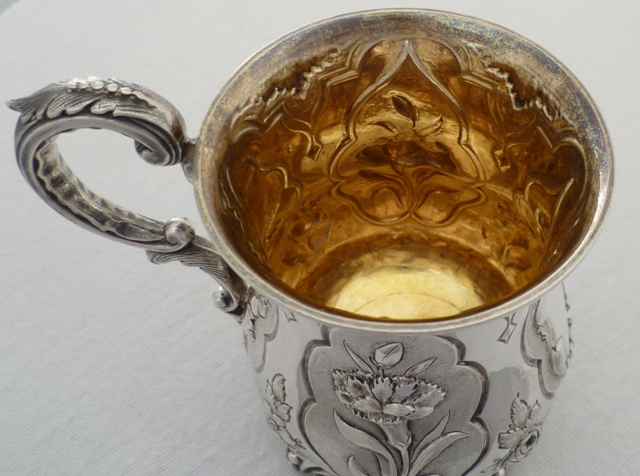 DESCRIPTION | Devastatingly attractive high Victorian silver mug with a gilded interior and an erased cartouche. |