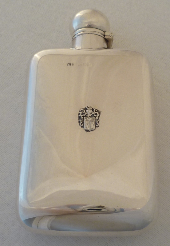 DESCRIPTION | Good Victorian silver pocket flask with an applied crest and a hinged bayonet cap. |
