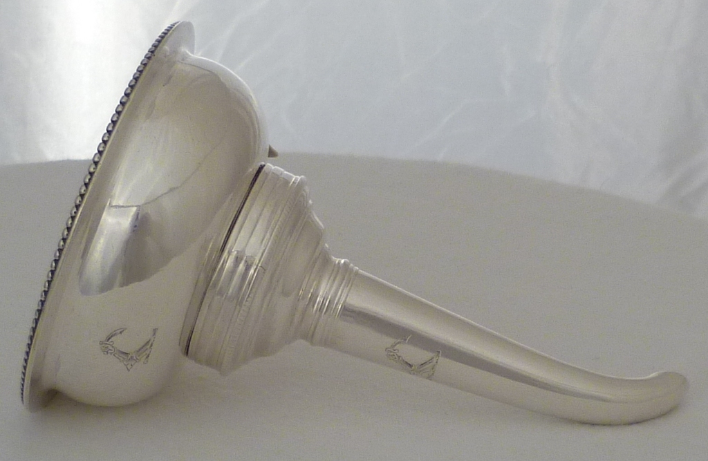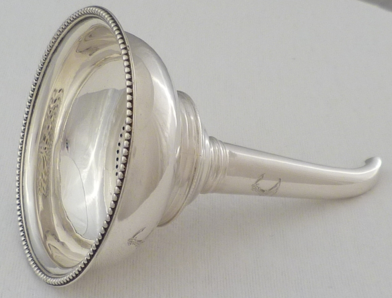 DESCRIPTION | Georgian silver wine funnel with bead edge decoration and matching crest to both parts. |