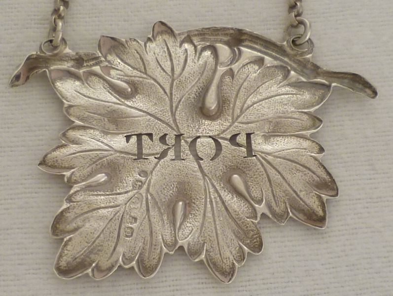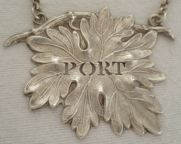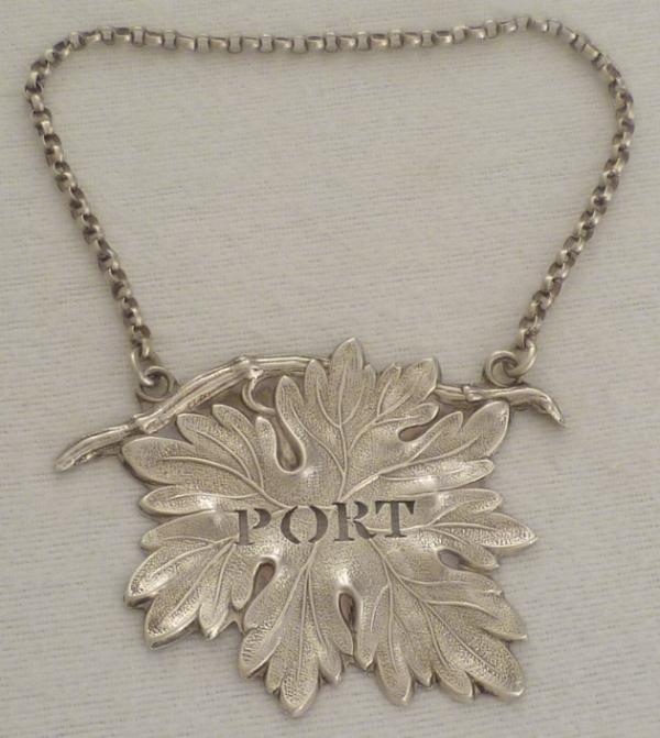 DESCRIPTION | William IV silver vine leaf label pierced PORT complete with a suspension chain. |