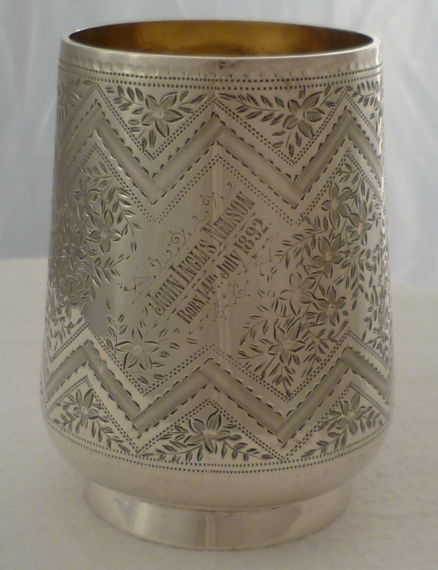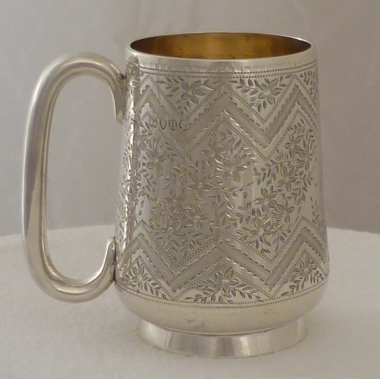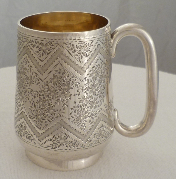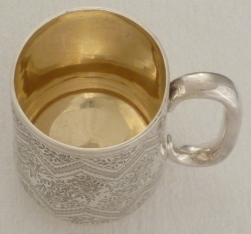 DESCRIPTION | Attractive Victorian silver mug with a gilded interior, engraved decoration and a presentation inscription. Edinburgh retailer's mark to base. |