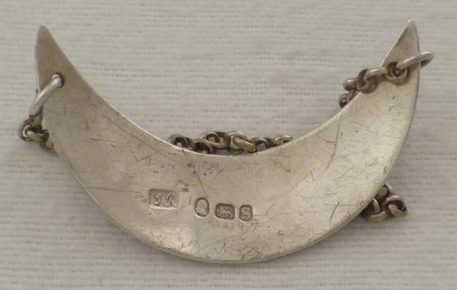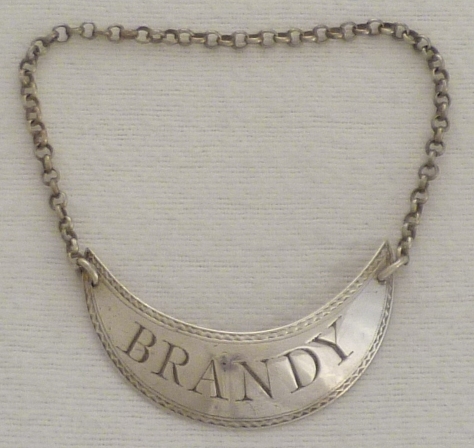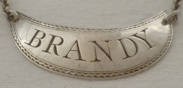DESCRIPTION | Georgian silver crescent BRANDY label with bright cut border. |