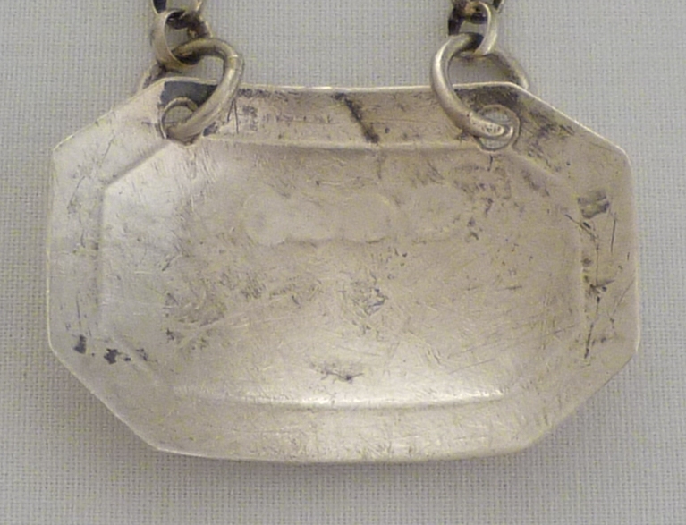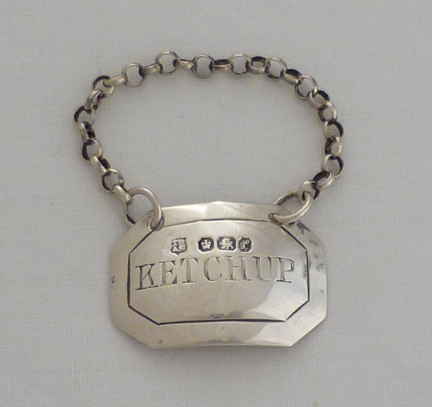 DESCRIPTION | Small Victorian silver KETCHUP label with suspension chain. |