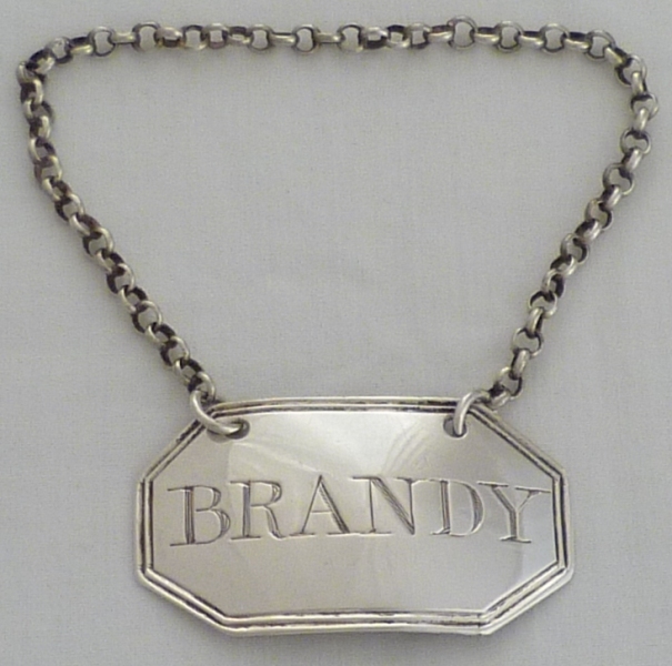 DESCRIPTION | Good Georgian silver wine label incised 'BRANDY' with cut corners and a thread border. |