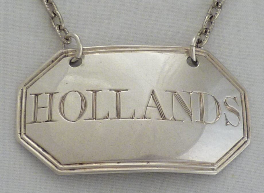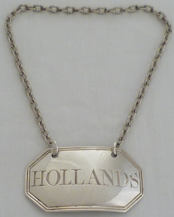 DESCRIPTION | Good Georgian silver wine label incised 'HOLLANDS' with cut corners and a thread border. Matching examples are available. |