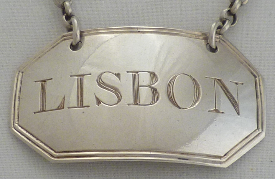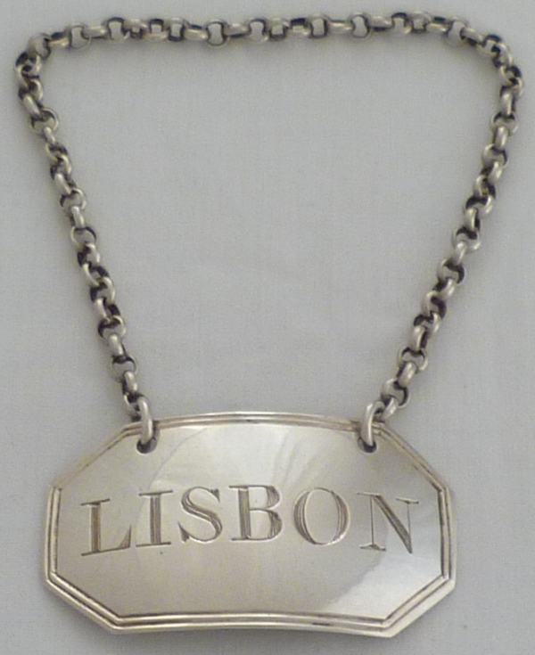 DESCRIPTION | Good Georgian silver wine label incised 'LISBON' with cut corners and a thread border. Matching examples are available. |