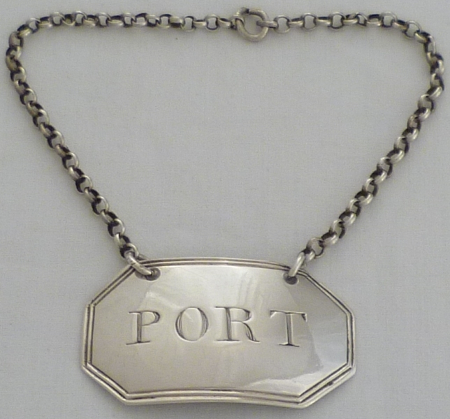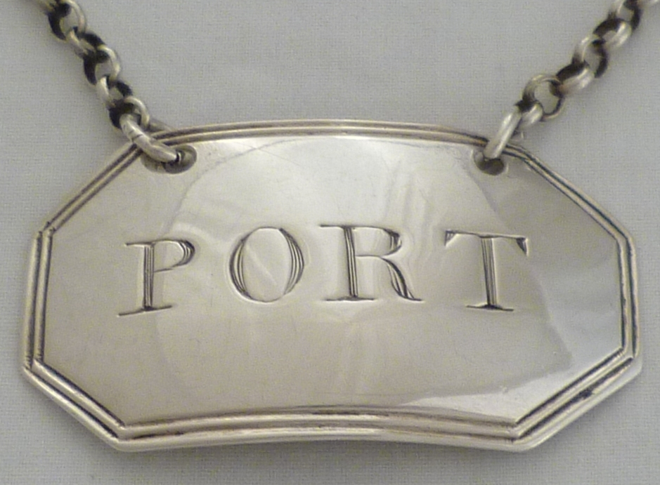 DESCRIPTION | Good Georgian silver wine label incised 'PORT' with cut corners and a thread border. Matching examples are available. |