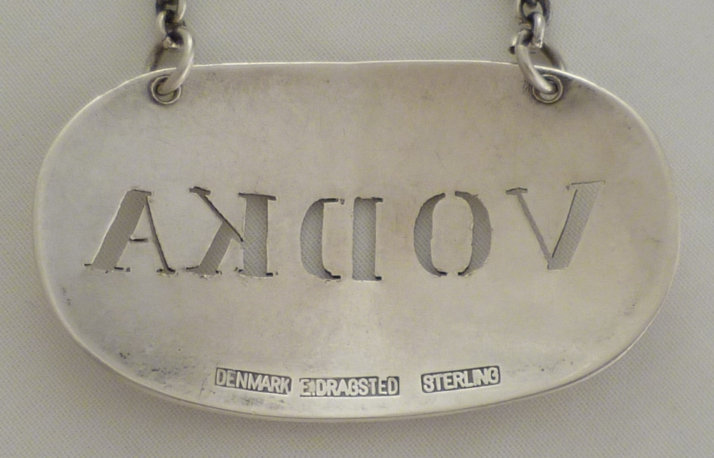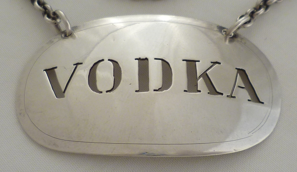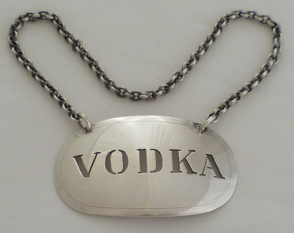 DESCRIPTION | Danish pierced silver 'VODKA' label. |